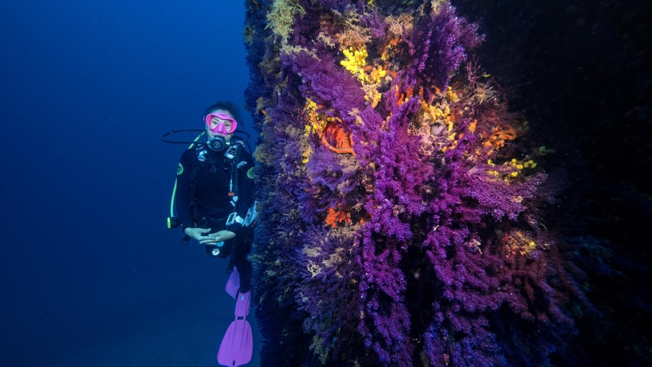 Dalış ekibi, Dünya Doğayı ve Doğal Kaynakları Koruma Birliğinin (IUCN) kırmızı listesinde yer alan, nesli tehlike altındaki kırmızı ve sarı mercanlar ile deniz çayırlarını yakından görüntüledi.