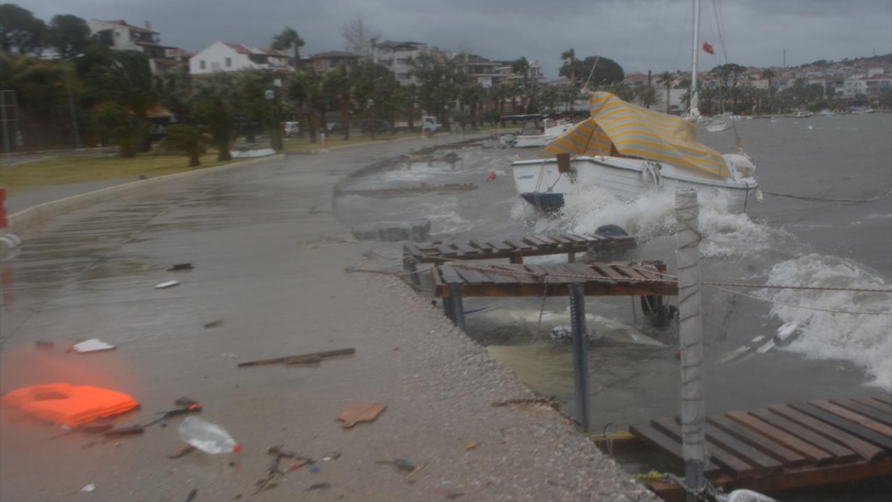 Balıkesir'in Ayvalık ilçesinde geceden bu yana etkili olan şiddetli yağış, su baskınlarına yol açtı. Yollarda su birikintileri oluştu, bazı balıkçı tekneleri battı.
