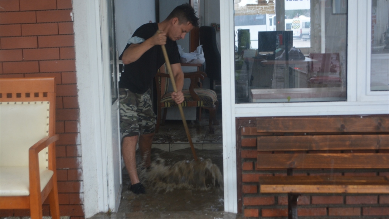 Kısa sürede metrekareye 40 kilogram yağış düştüğü belirlenen kentte bazı ev ve iş yerlerini su bastı.