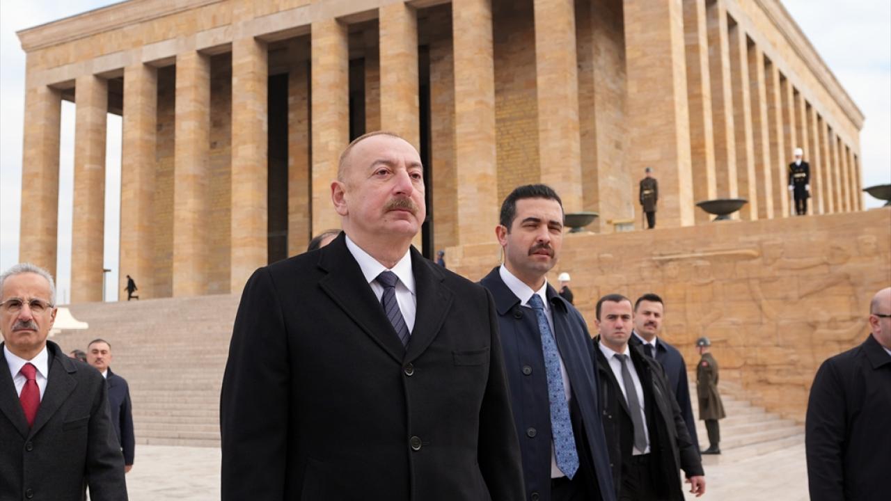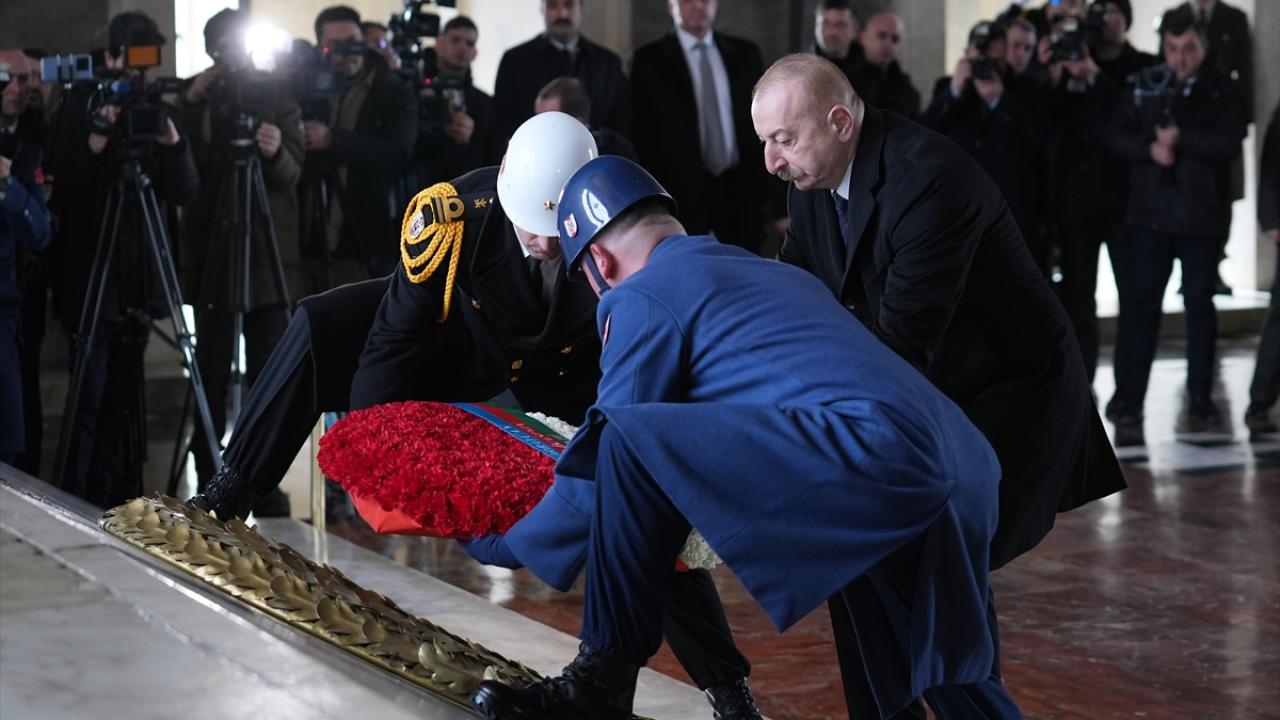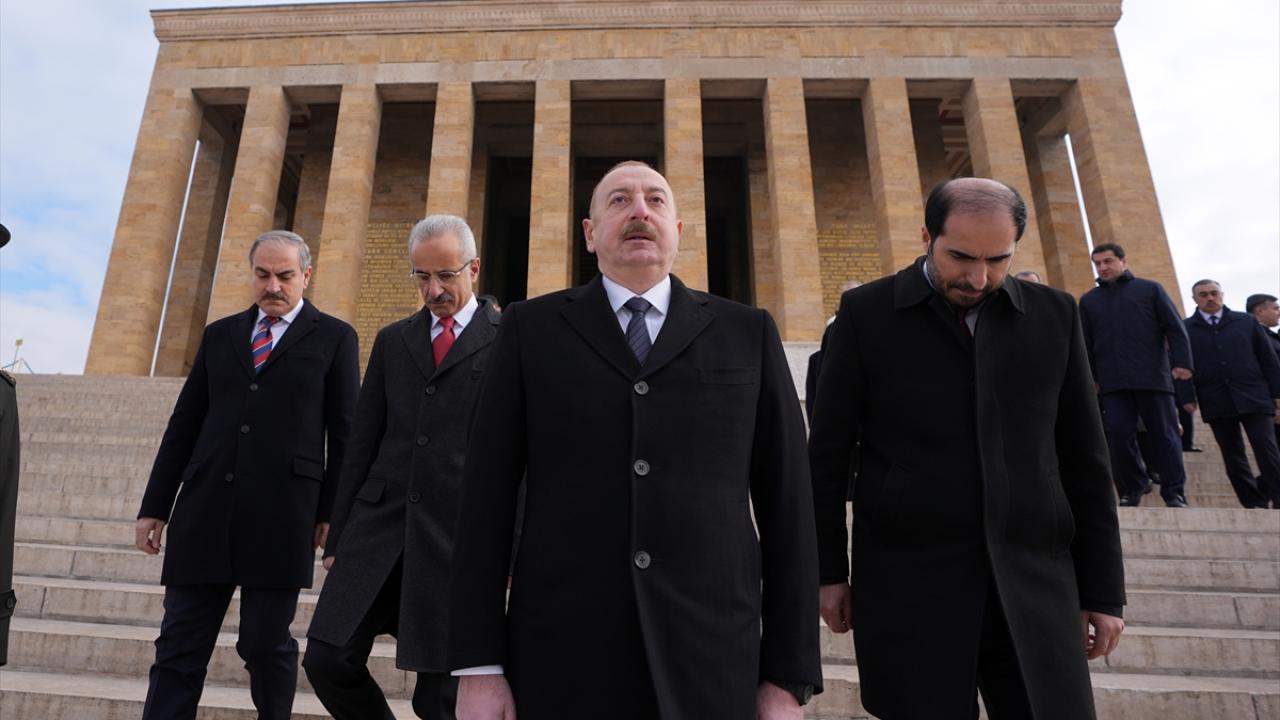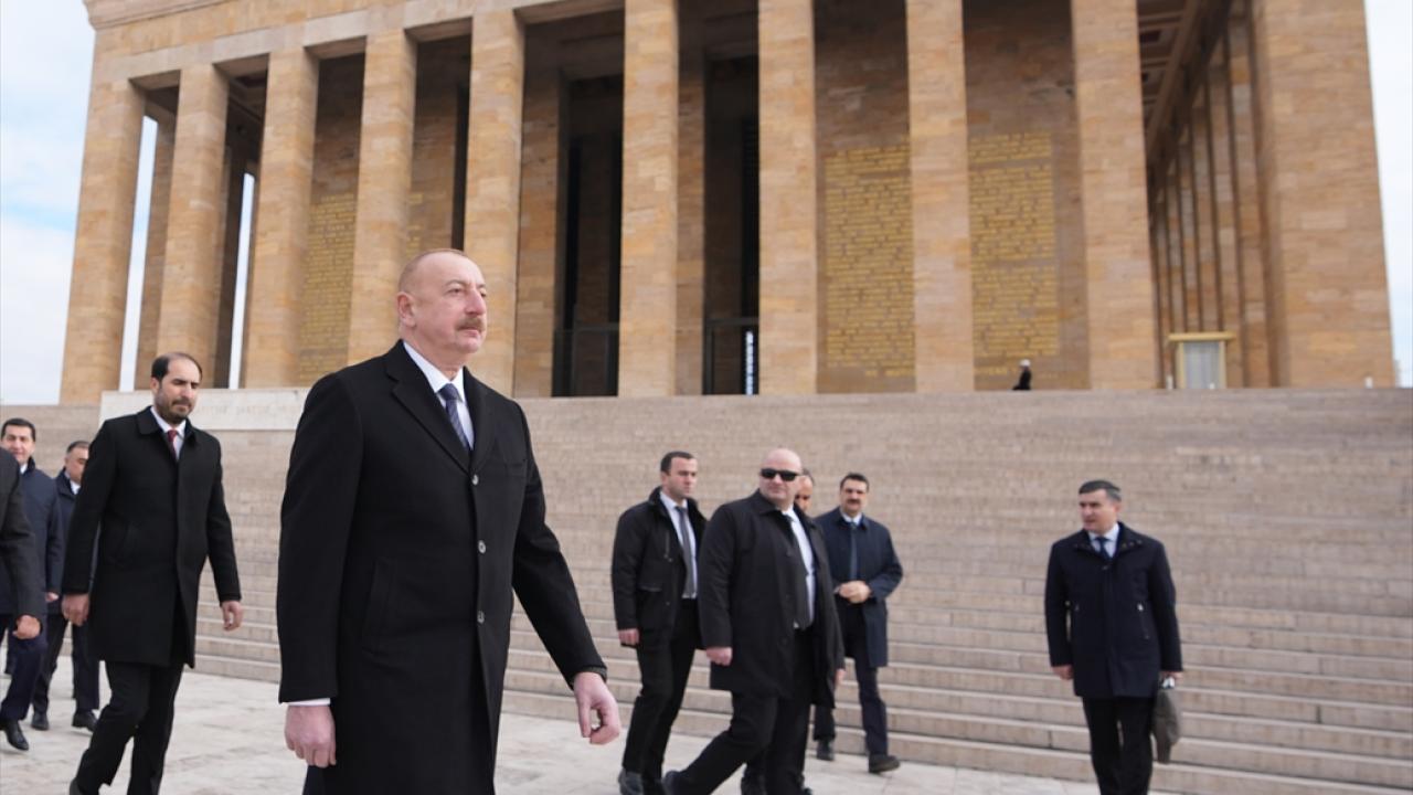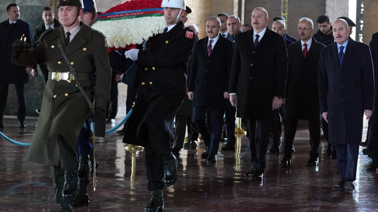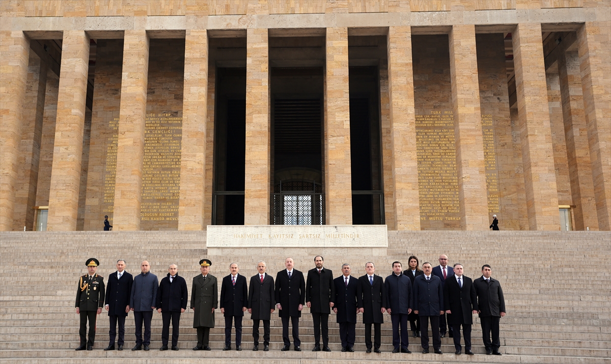Gazi Mustafa Kemal Atatürk`ün mozolesine çelenk bırakarak saygı duruşunda bulunan Aliyev, ziyaretin ardından hatıra fotoğrafı çektirerek Anıtkabir Özel Defteri`ni imzaladı.