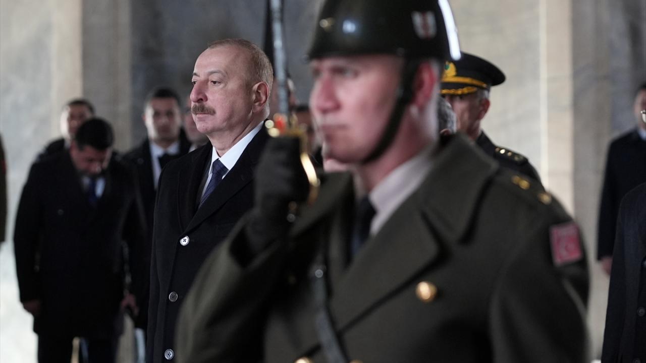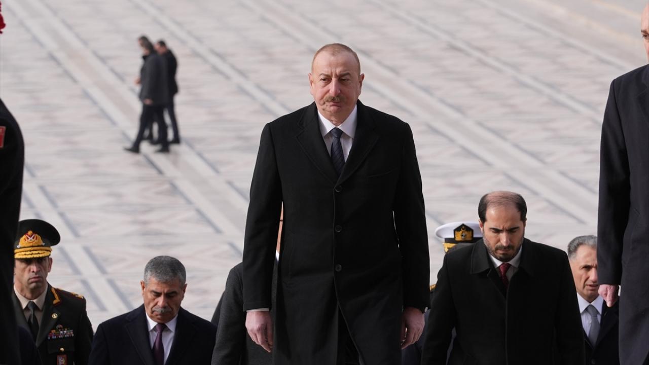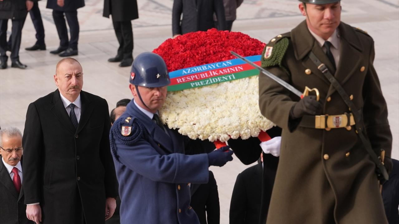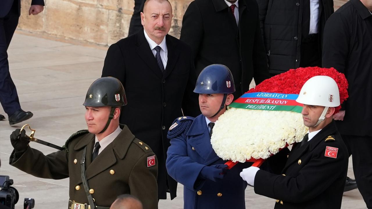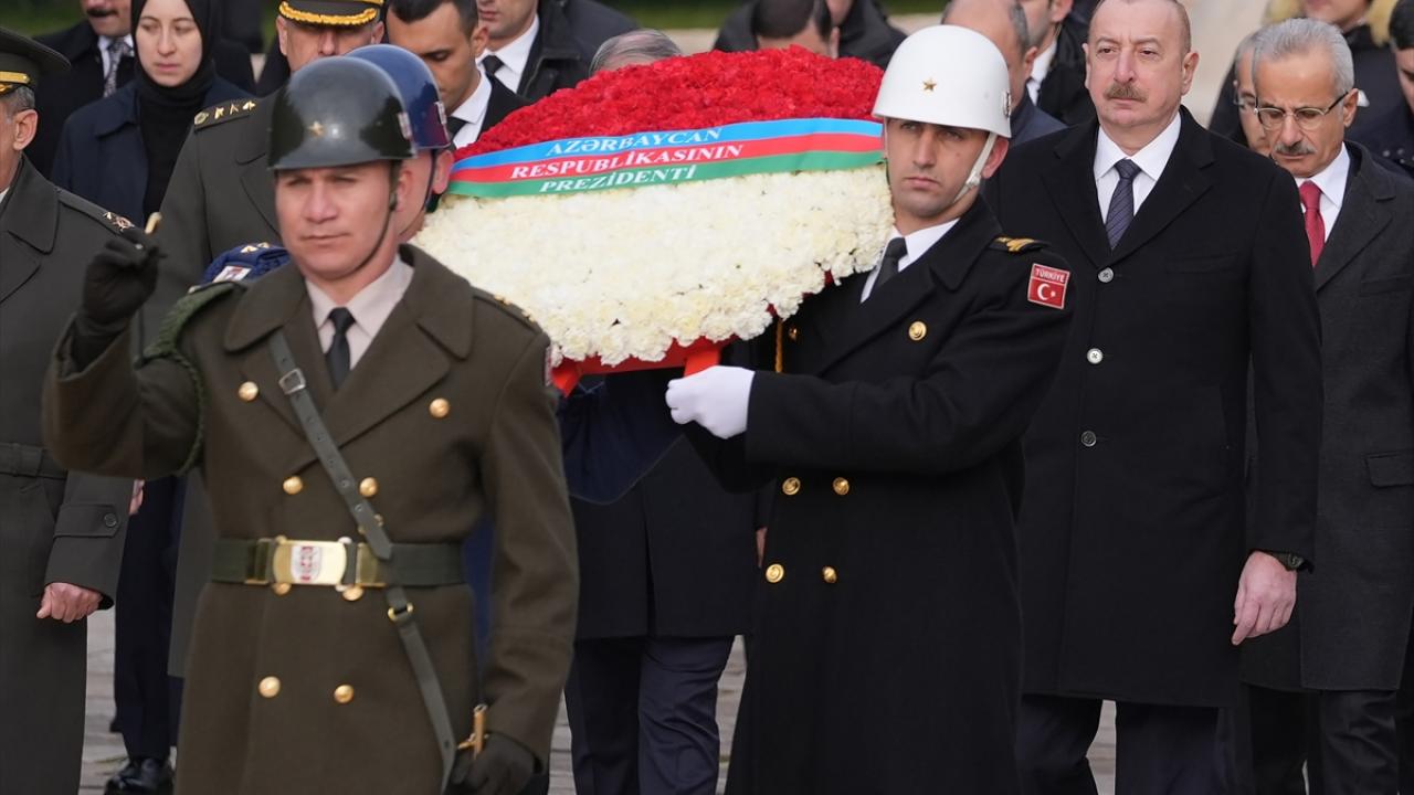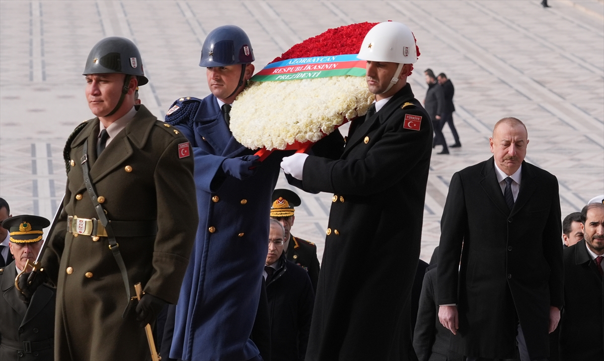Gazi Mustafa Kemal Atatürk`ün mozolesine çelenk bırakarak saygı duruşunda bulunan Aliyev, ziyaretin ardından hatıra fotoğrafı çektirerek Anıtkabir Özel Defteri`ni imzaladı.