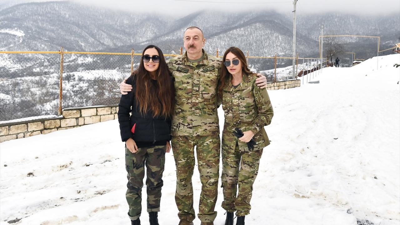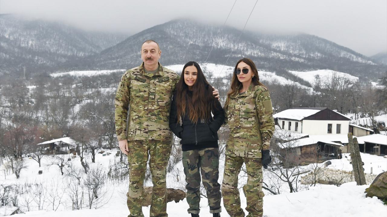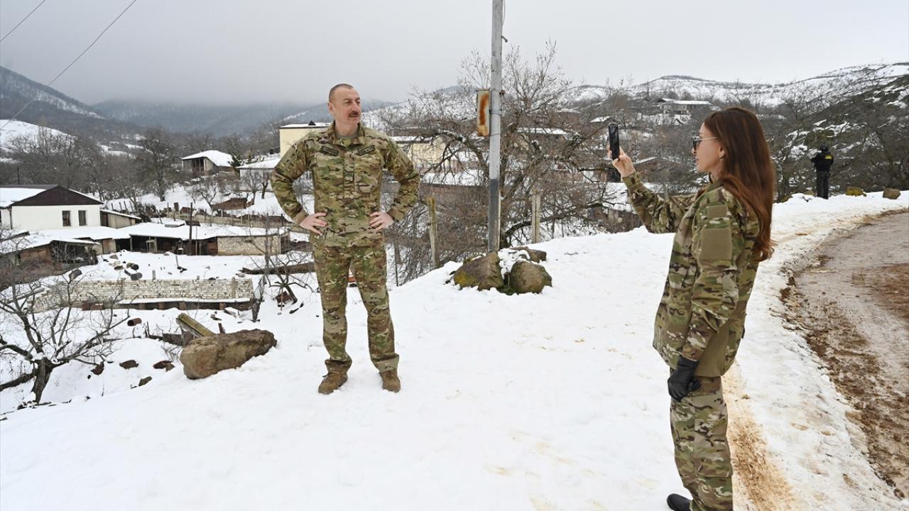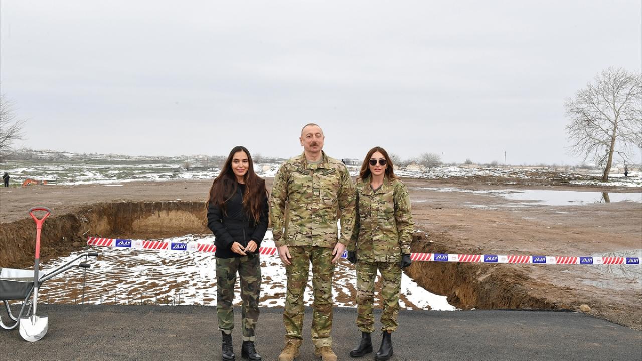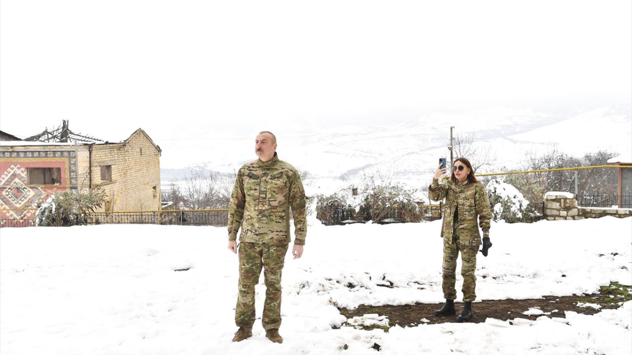 İlham Aliyev, görüntülerde, yol boyunca yıkık durumdaki yerleşim birimlerini göstererek, tüm köylerin Ermenistan güçlerince yıkıldığını söyledi.