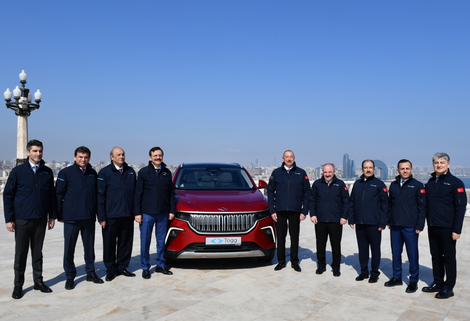 Türkiye'nin yerli ve milli otomobili Togg, Azerbaycan Cumhurbaşkanı İlham Aliyev’e Sanayi ve Teknoloji Bakanı Mustafa Varank teslim etti. Aliyev, Togg’u Cumhurbaşkanı Recep Tayyip Erdoğan’ın ardından teslim alan ikinci kişi oldu.