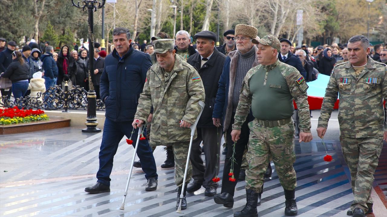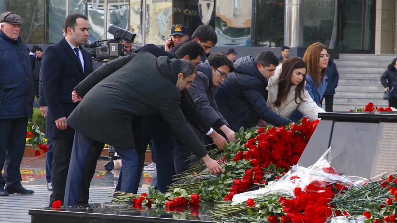 Azerbaycanlılar, Ermenilerin Hocalı`da katlettiği 613 kişiyi anmak için Bakü`deki Ana Feryadı Anıtı`na akın etti.