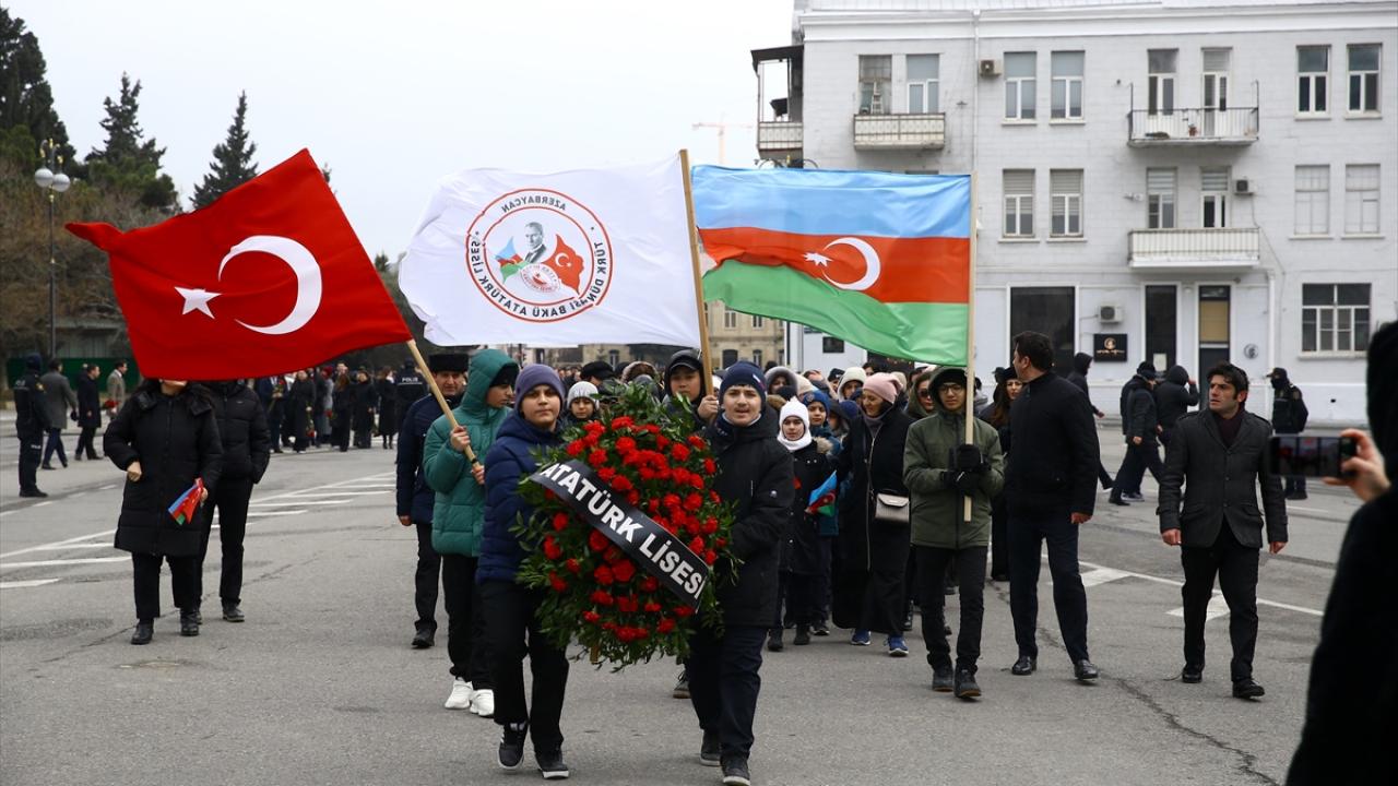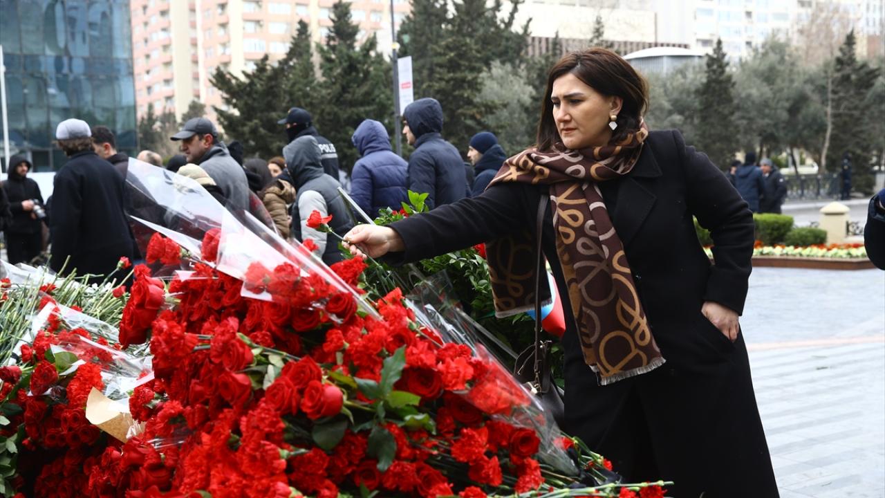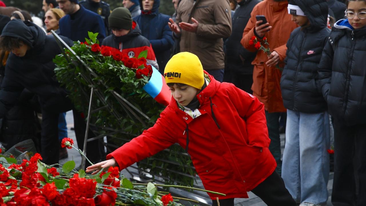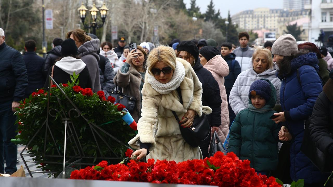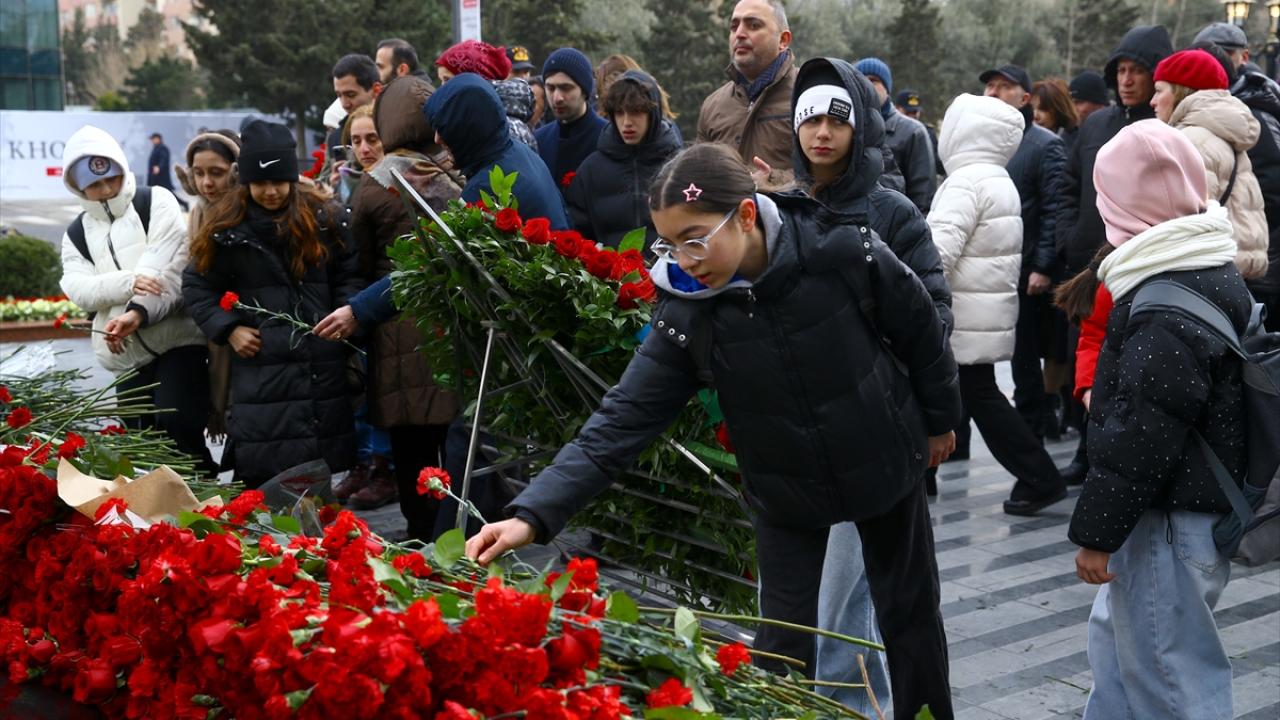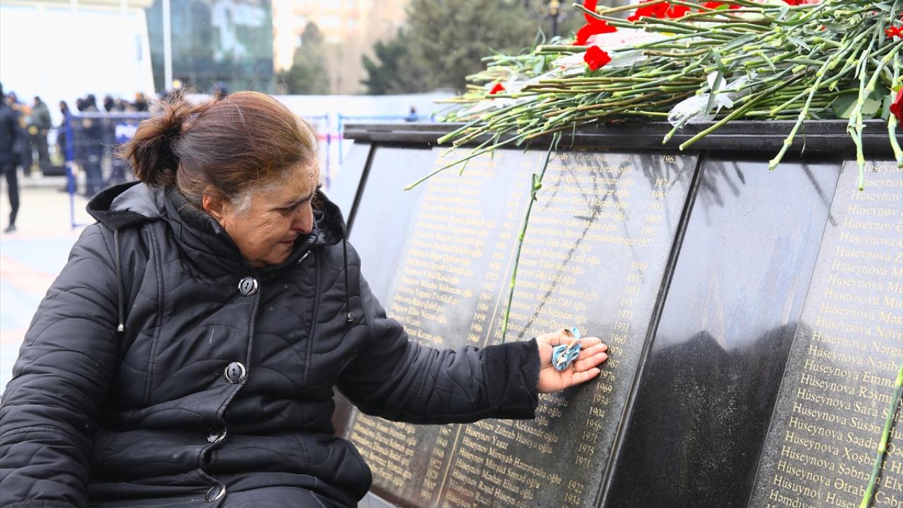 Azerbaycanlılar, Ermenilerin Hocalı`da katlettiği 613 kişiyi anmak için Bakü`deki Ana Feryadı Anıtı`nda bir araya geldi.