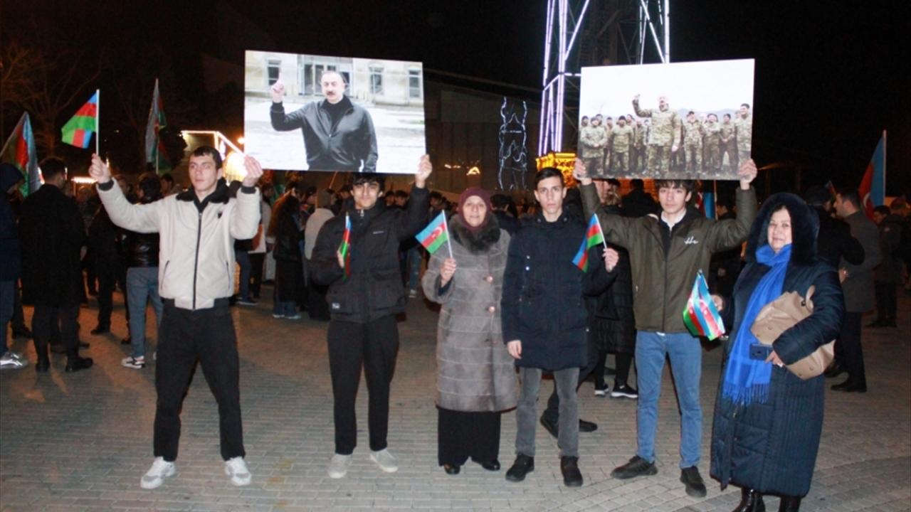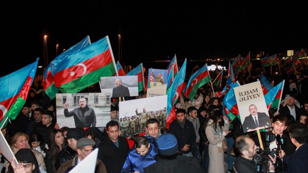 Azerbaycan'da Cumhurbaşkanı İlham Aliyev'in seçimde elde ettiği zafer kutlanıyor. Resmi olmayan sonuçlara göre, İlham Aliyev'in seçimi kazanmasının açıklanması üzerine Bakülüler şehrin merkezi bölgelerine akın etti.