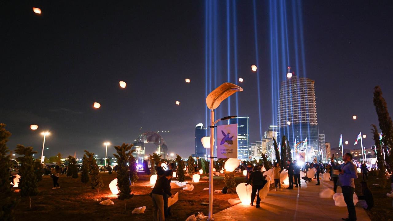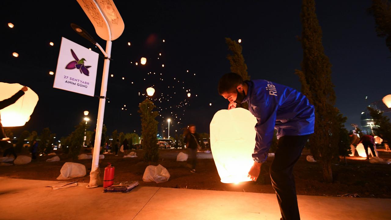 Cumhurbaşkanı İlham Aliyev tarafından bu sabah temeli atılan Vatan Savaşı Anıtı ile Zafer Müzesi`nin arazisinde şehitlerin anısına yaklaşık 3 bin dilek feneri havaya bırakıldı.