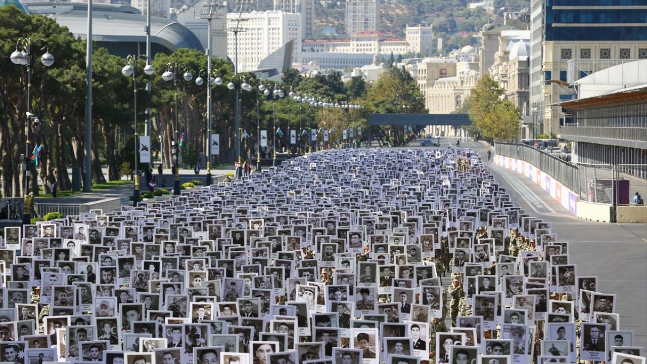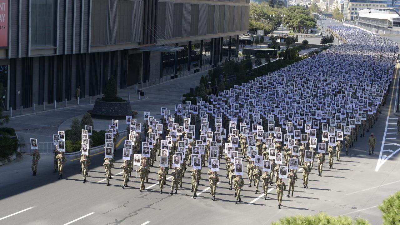 Azerbaycan'da, Ermenistan'ın işgali altındaki toprakların kurtarılması için 27 Eylül 2020'de başlatılan 44 günlük savaşın birinci yılında şehitlerin anısına yürüyüş düzenlendi.