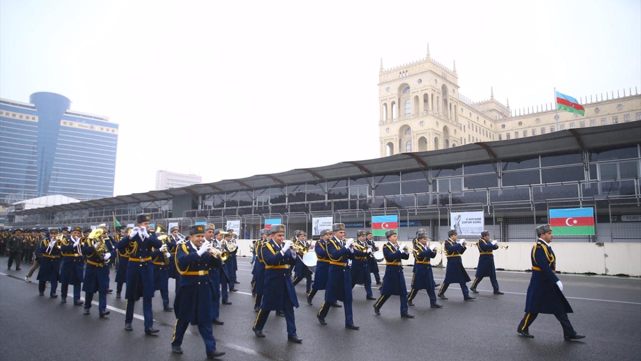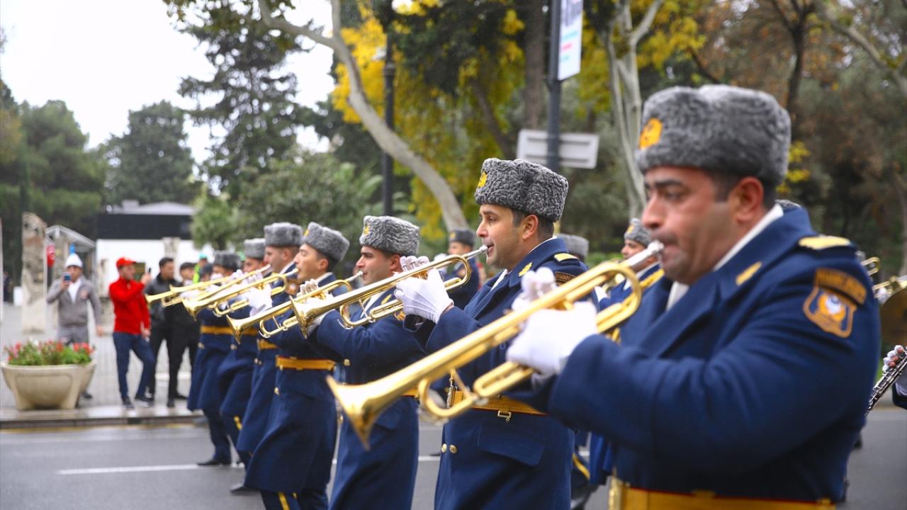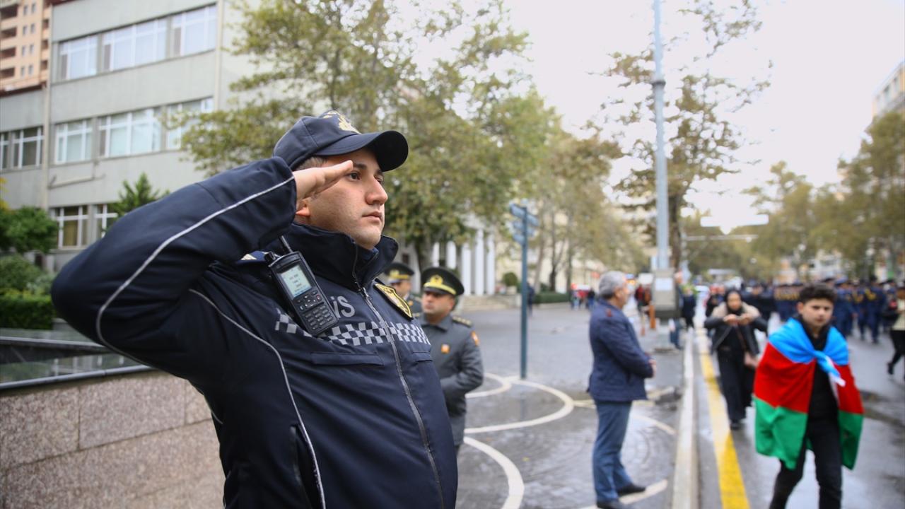 Yürüyüş öncesinde şehitler saygı duruşu ile anıldı, Azerbaycan Milli Marşı okundu. Askeri bandonun marşlar seslendirdiği yürüyüşe vatandaşlar da eşlik etti.