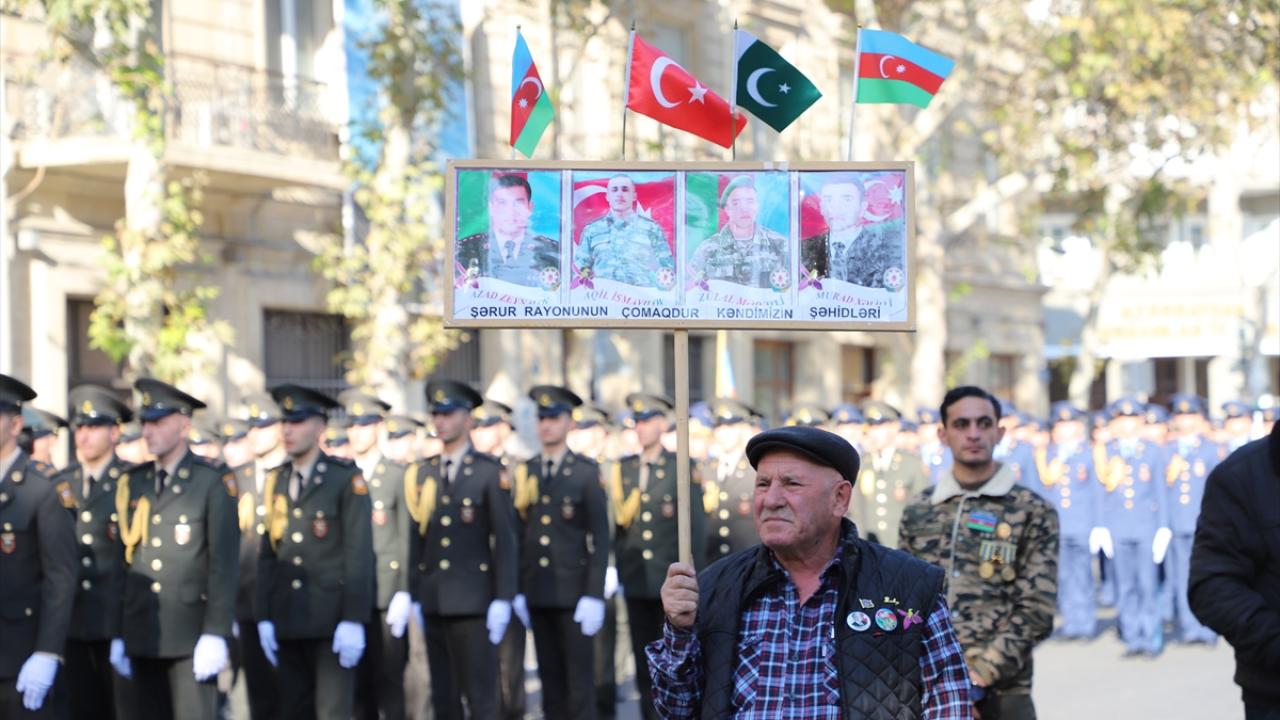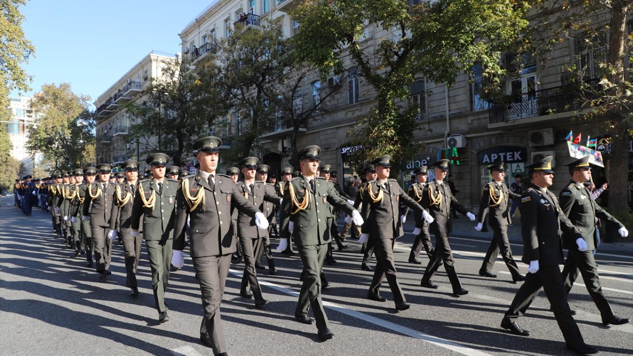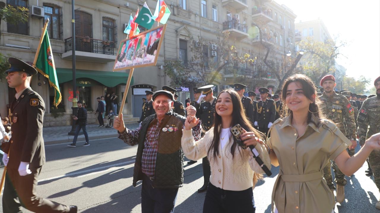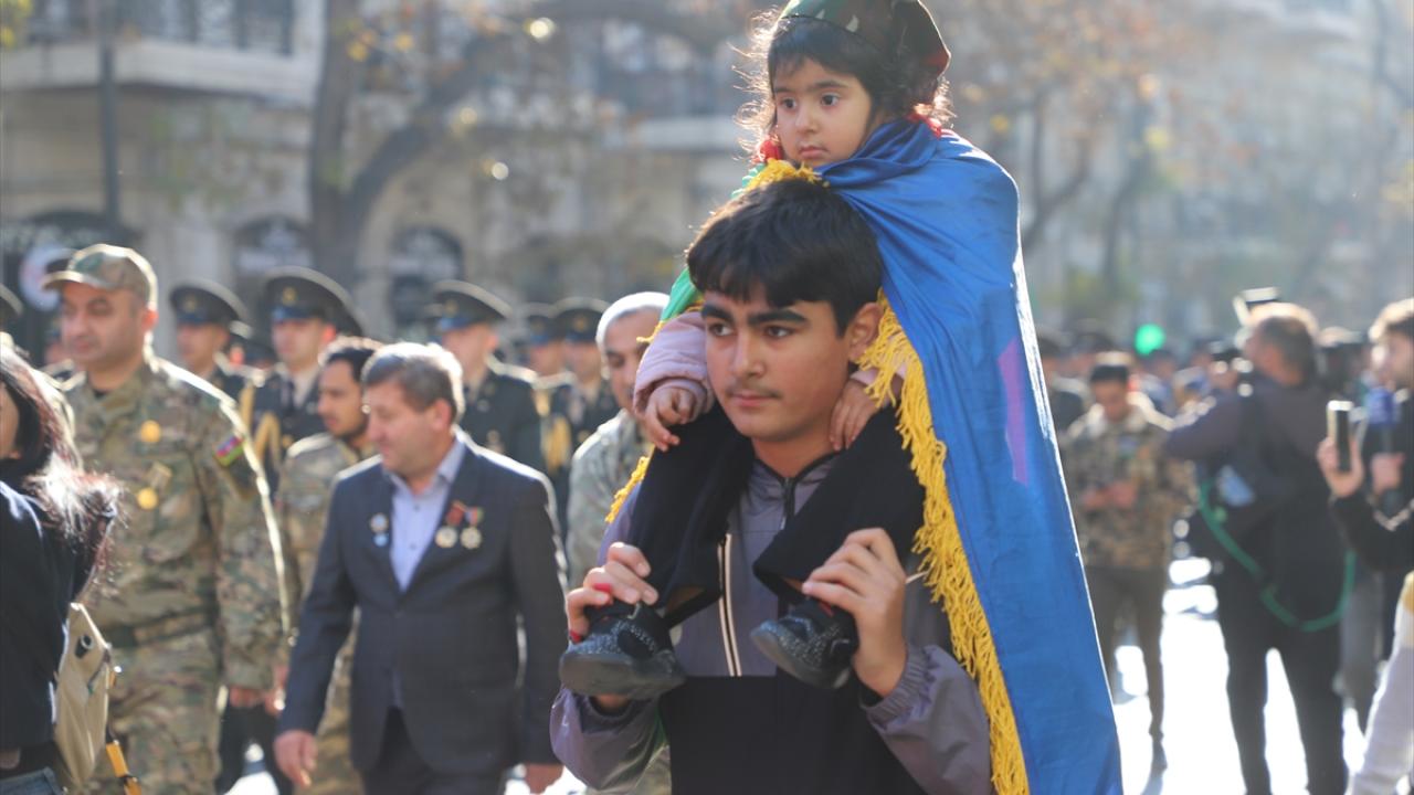 "Zafer Günü" kutlamaları kapsamında Bakü`nün çeşitli bölgelerinde düzenlenen yürüyüşlere, askerler ve Karabağ Savaşı gazileri katıldı.