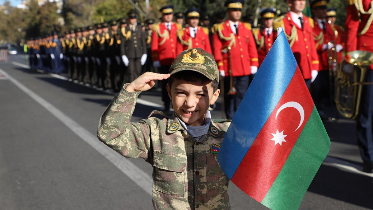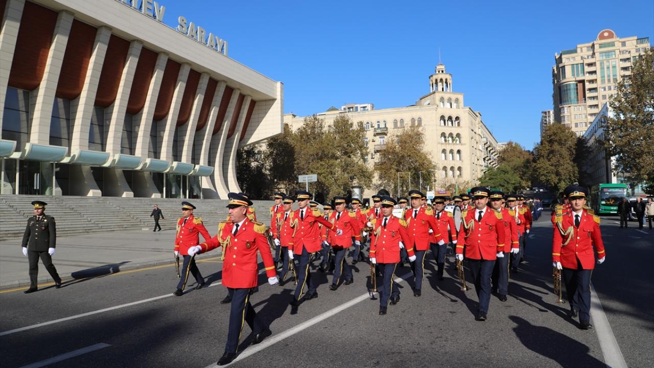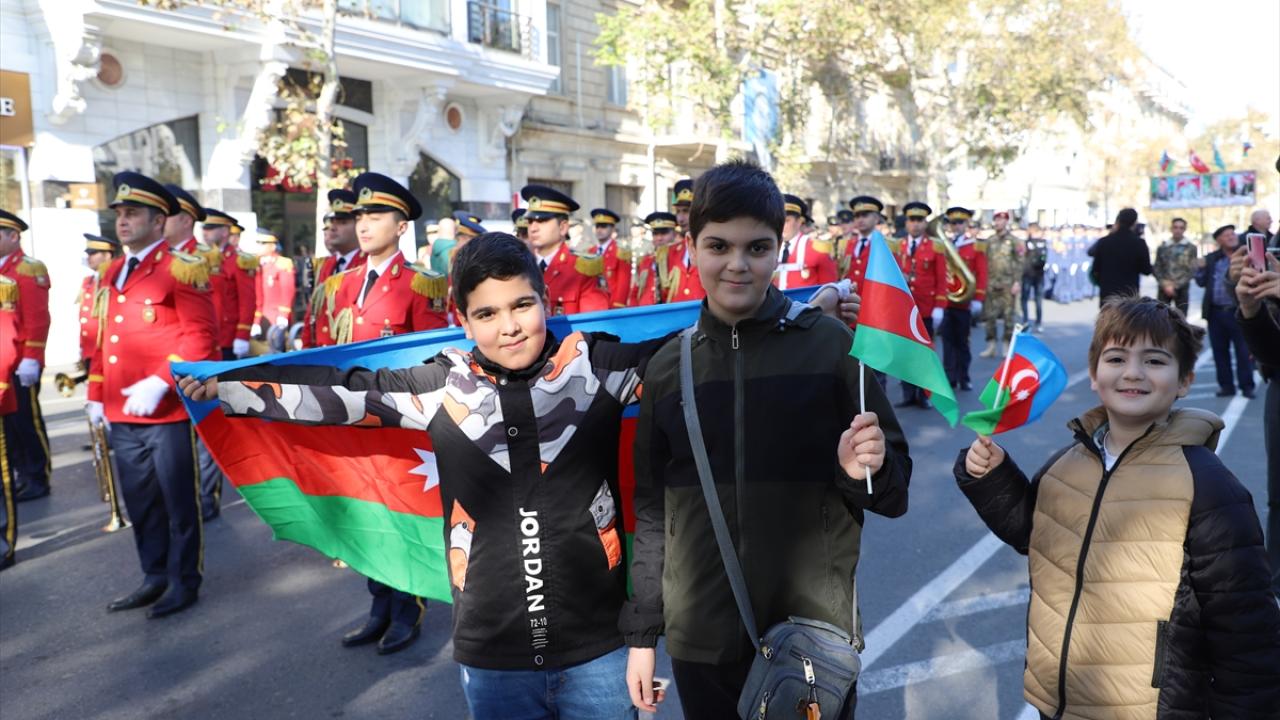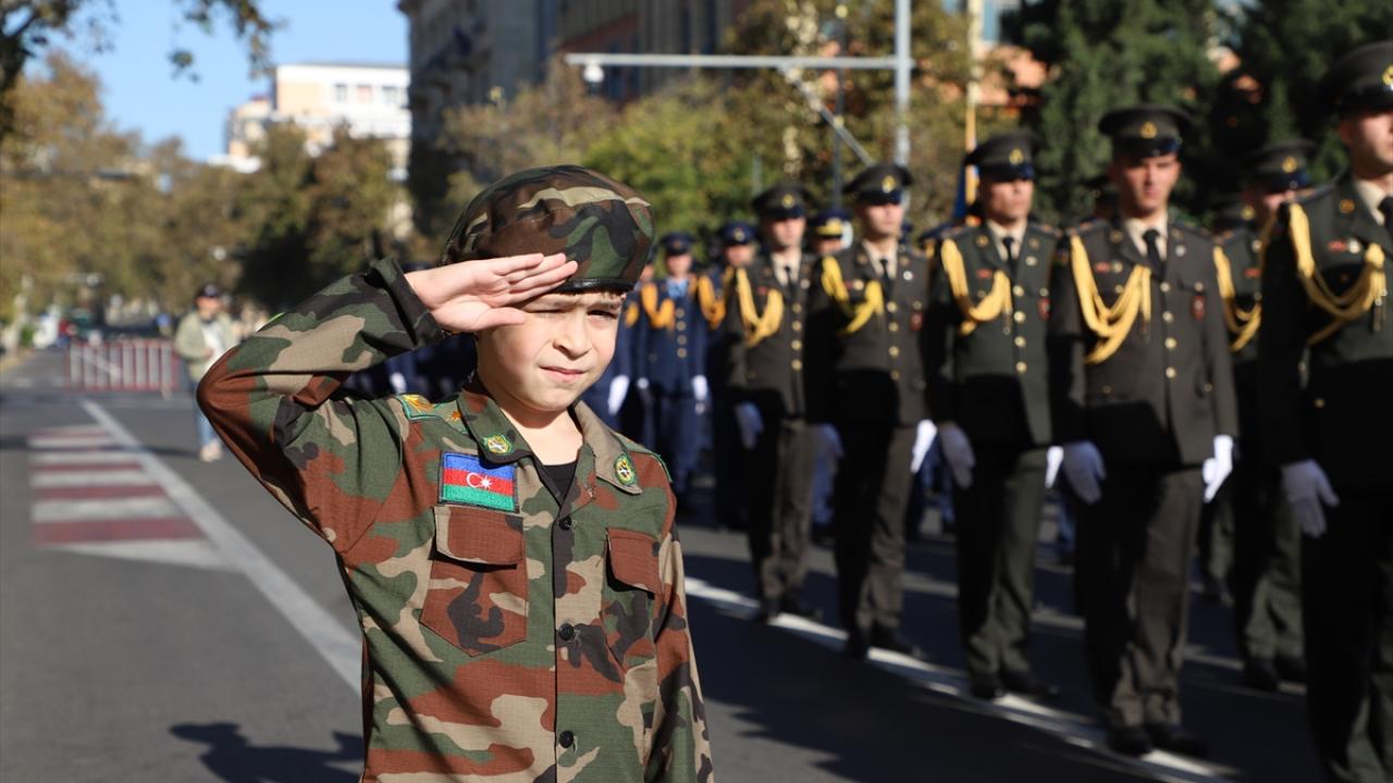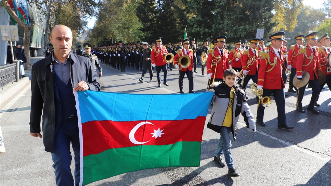 "Zafer Günü" kutlamaları kapsamında Bakü`nün çeşitli bölgelerinde düzenlenen yürüyüşlere, askerler ve Karabağ Savaşı gazileri katıldı.