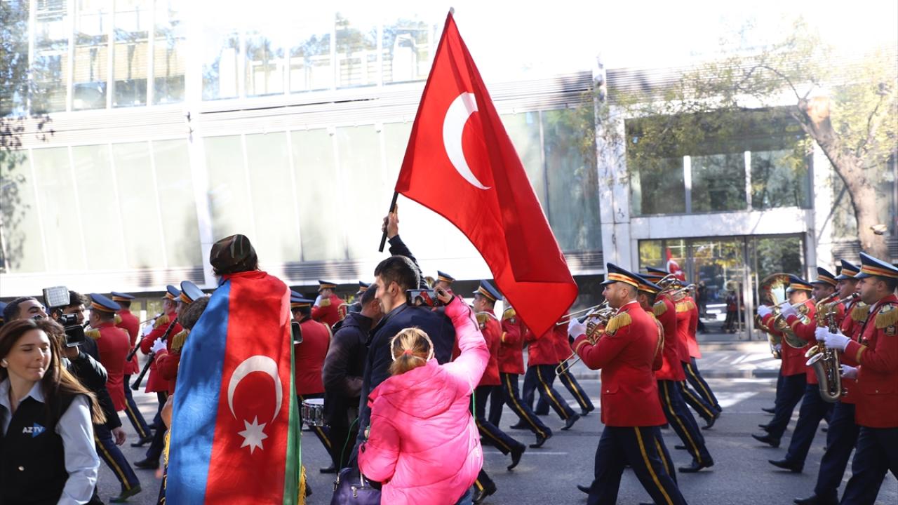 Yürüyüş öncesinde, şehitler saygı duruşuyla anıldı, Azerbaycan Milli Marşı okundu. Askeri bandonun marşlar seslendirdiği yürüyüşte vatandaşlar da yer aldı.