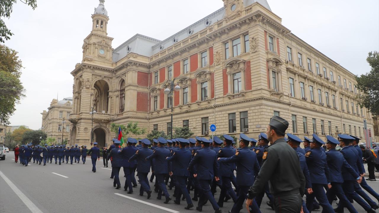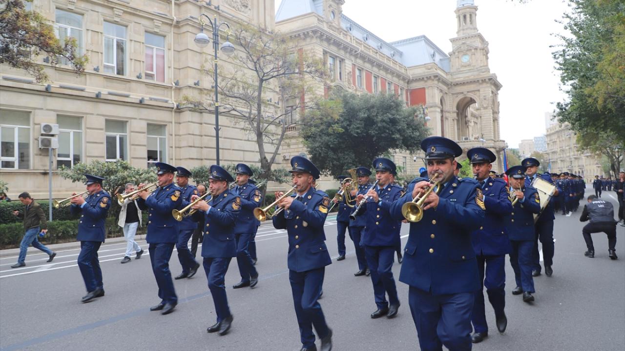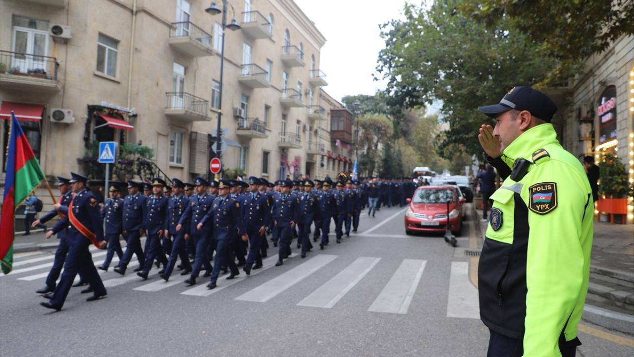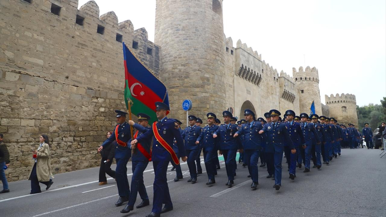 "Zafer Günü" kutlamaları kapsamında Bakü`nün çeşitli bölgelerinde düzenlenen yürüyüşlere, askeri lise öğrencileri ve Karabağ Savaşı gazileri katıldı.