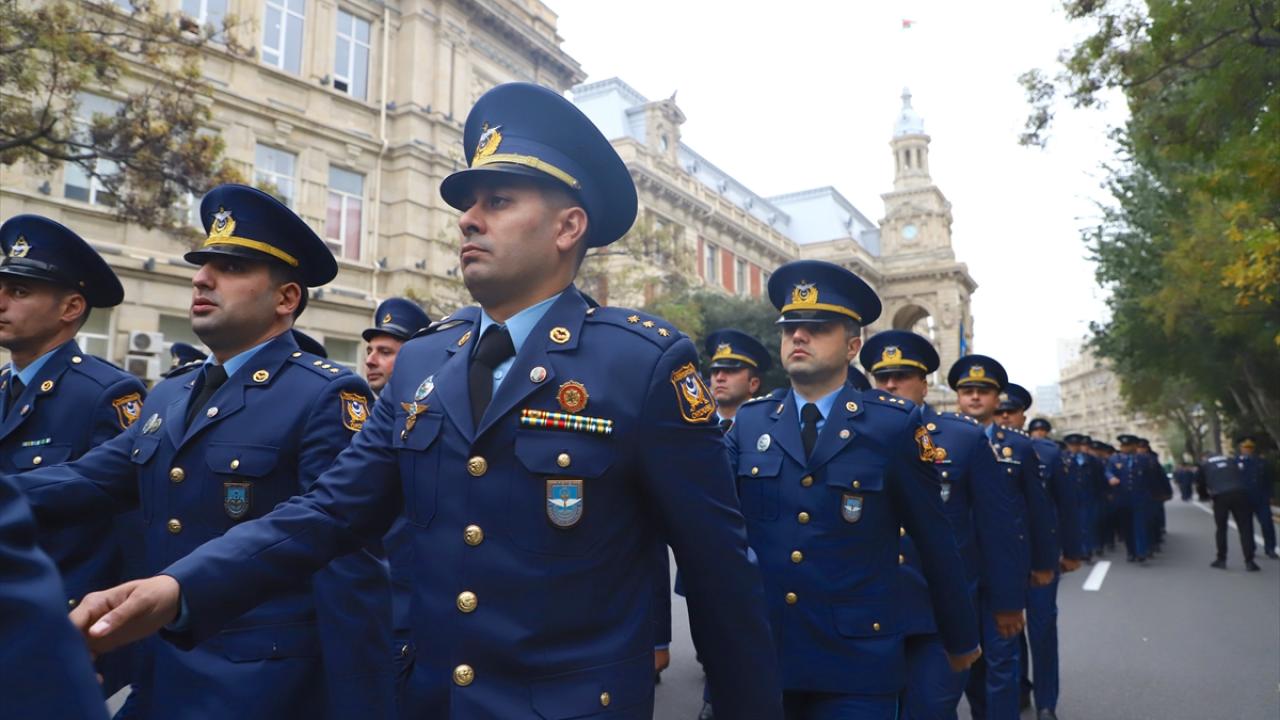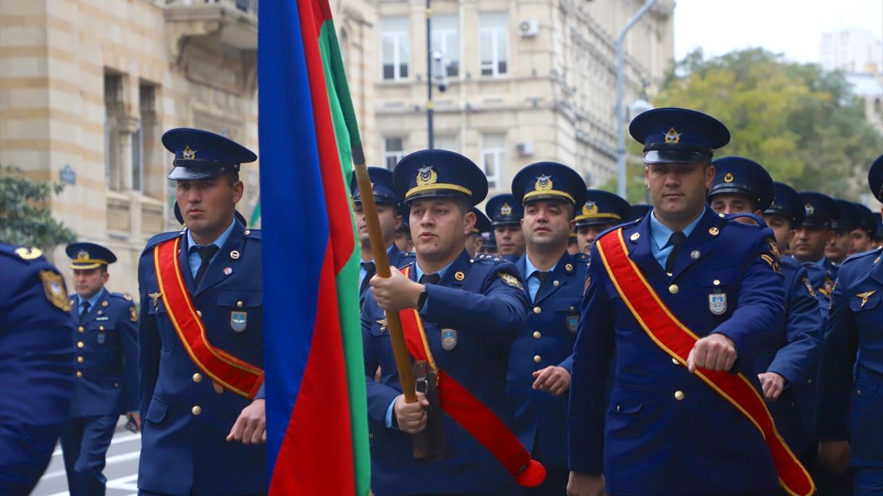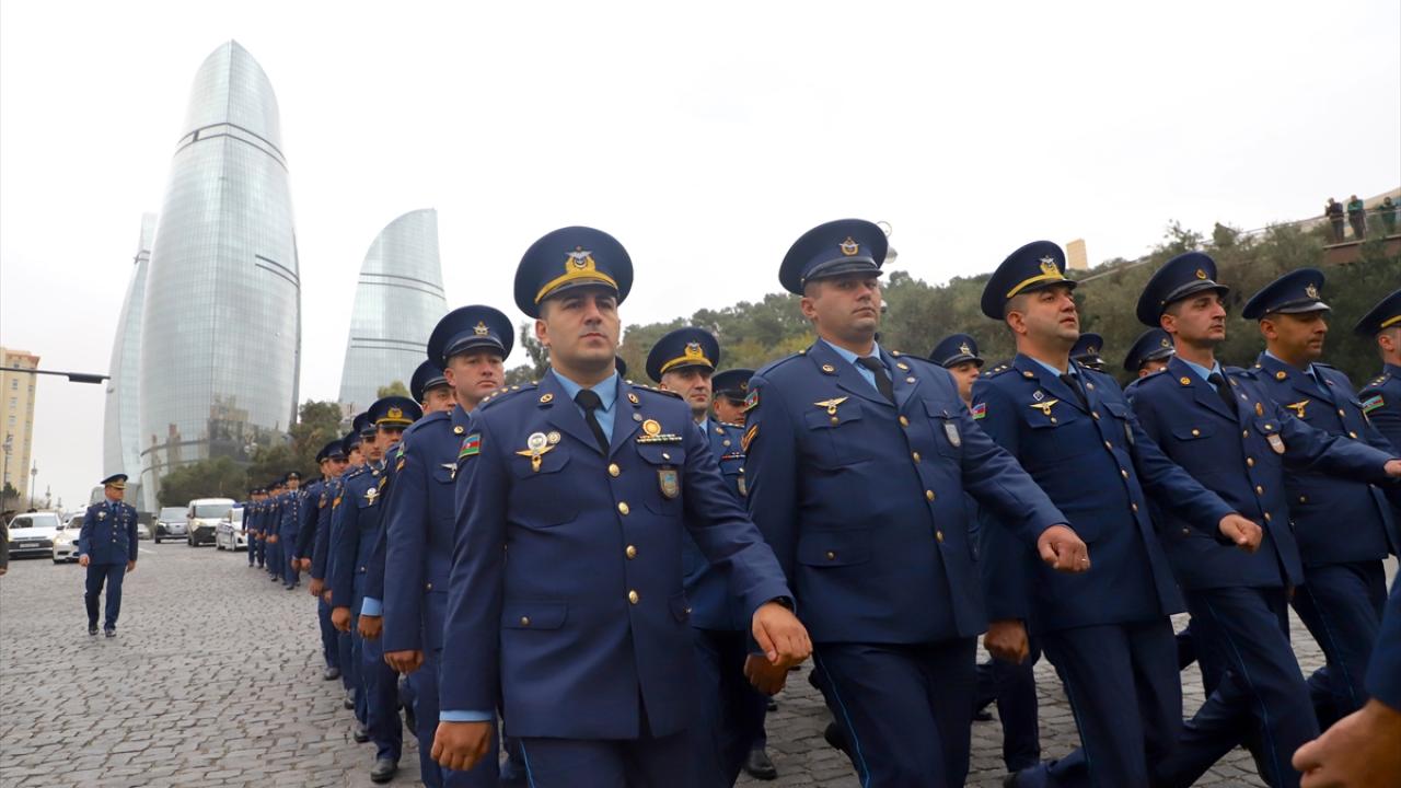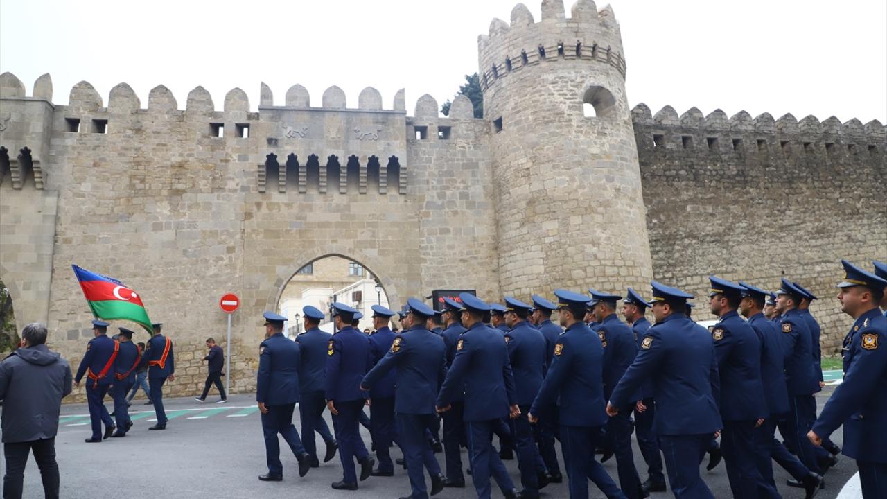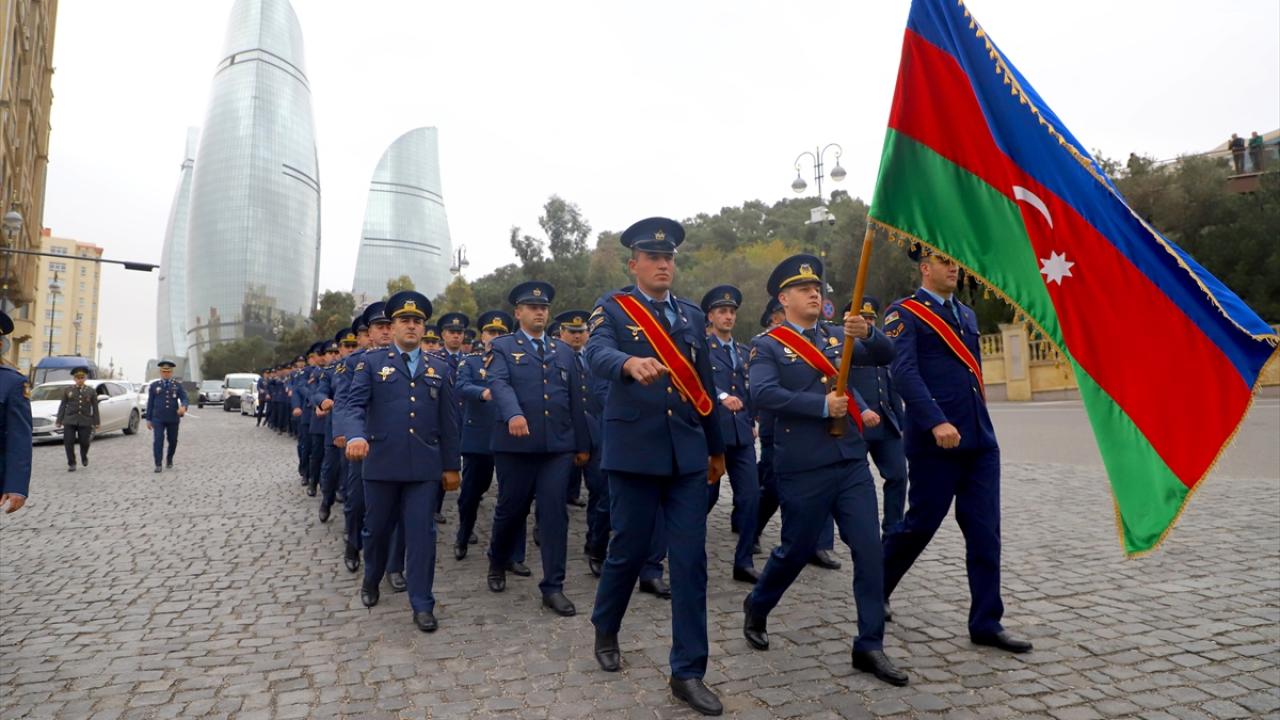 "Zafer Günü" kutlamaları kapsamında Bakü`nün çeşitli bölgelerinde düzenlenen yürüyüşlere, askeri lise öğrencileri ve Karabağ Savaşı gazileri katıldı.
