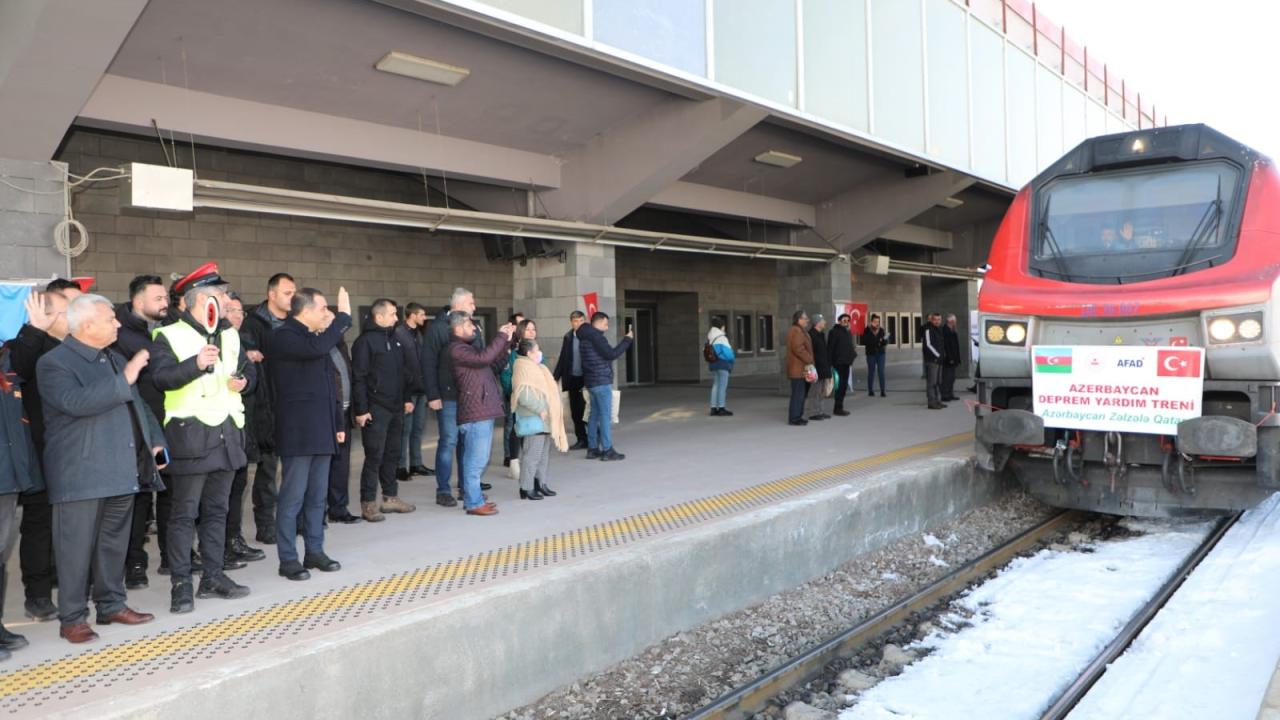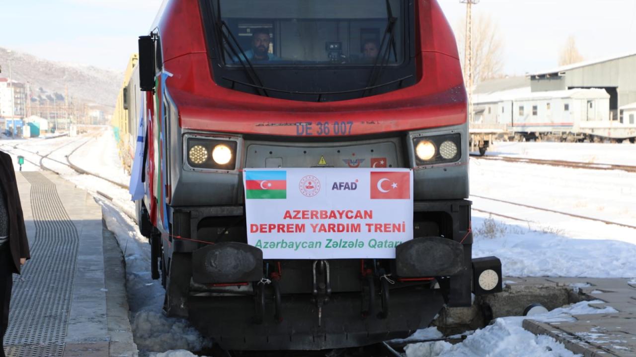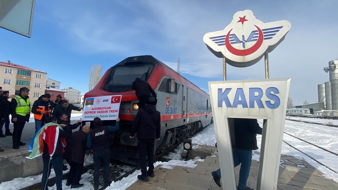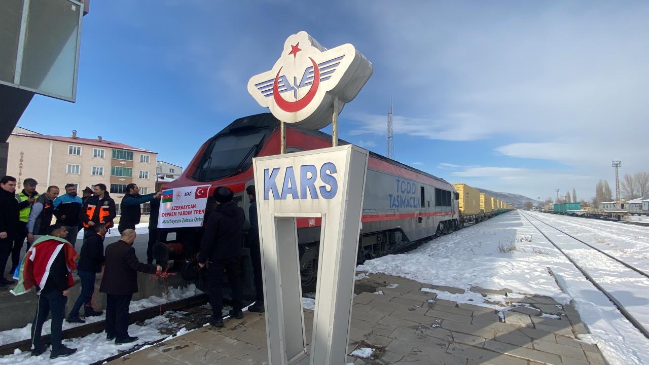Azerbaycan`daki Türk iş insanlarının oluşturduğu "Türkiye Yüzyılı Birlik ve Dayanışma Platformu" kampanyasında toplanan giysi, battaniye, kuru gıda ve hijyen malzemelerinin yüklendiği 25 konteynerden oluşan tren, Türkiye`nin Bakü Büyükelçisi Cahit Bağcı, Azerbaycan Demiryolları Yönetim Kurulu Başkanı Rövşen Rüstemov ve milletvekillerince uğurlandıktan 3 gün sonra Kars`a geldi.