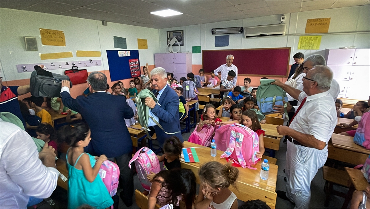 Daha sonra Gökmeydan İlkokuluna geçen heyet, öğrencilerle bir araya gelerek, çanta ve kırtasiye malzemelerini depremzede öğrencilere dağıttı.
