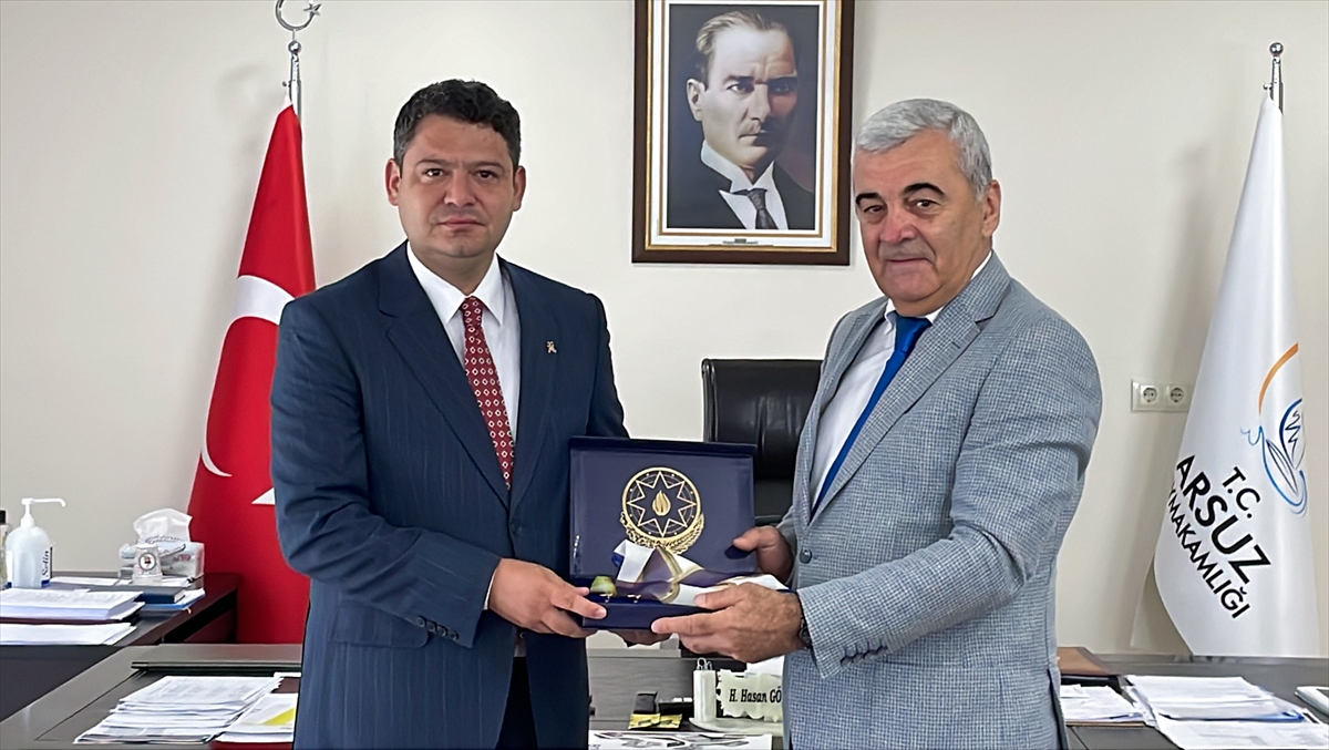 Azerbaycan Diaspora Bakan Yardımcısı Valeh Hacıyev ve beraberindeki heyet, Arsuz Kaymakamı Hacı Hasan Gökpınar`ı makamında ziyaret etti.