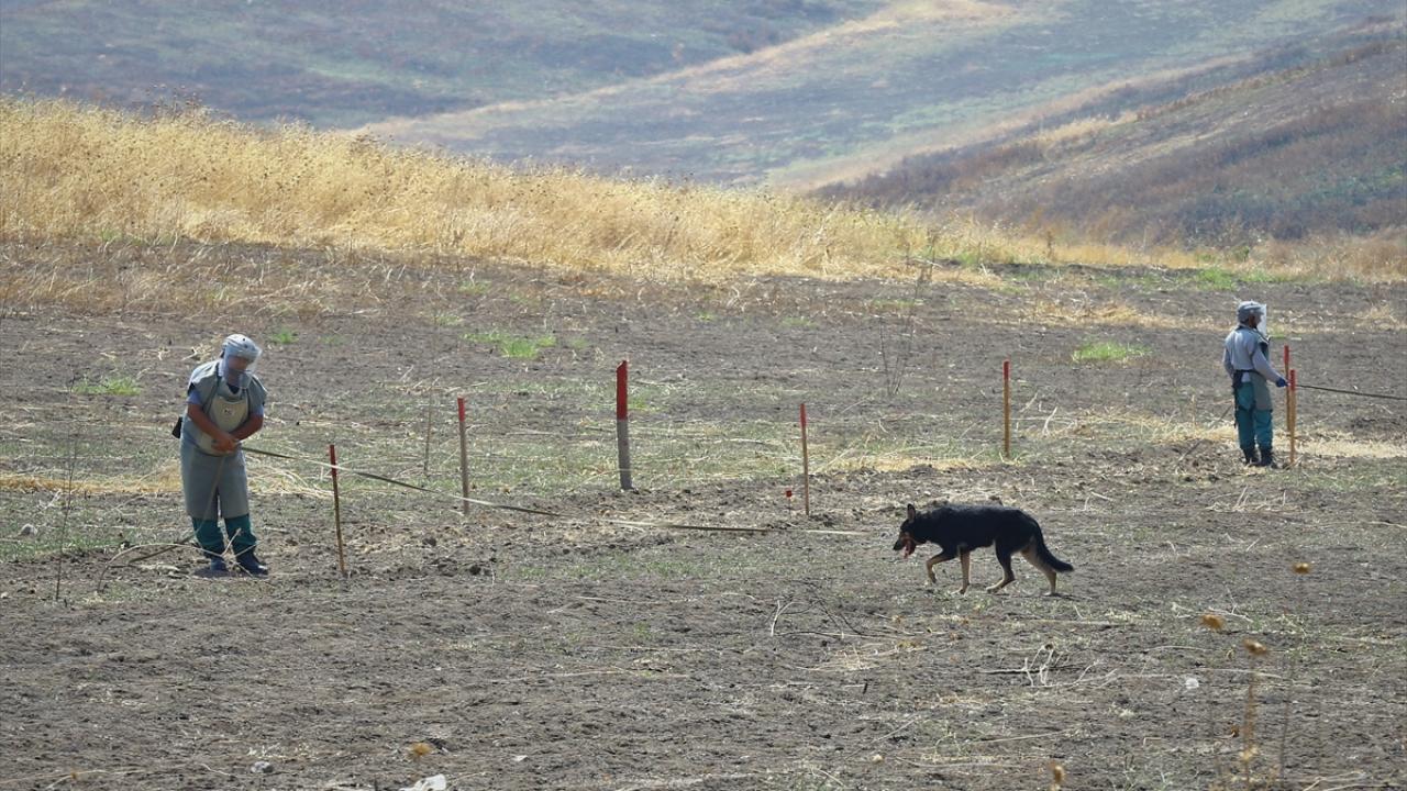 Mayın arama timleri, yaklaşık 10 aydır eğitimli köpekler eşliğinde bölgeleri karış karış tarayarak mayınlardan arındırmaya çalışıyor. Uzman ekipler, söz konusu çalışmalarda uluslararası toplumun da desteğini beklediklerini vurguluyor.