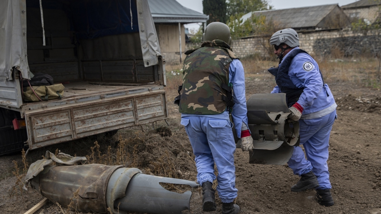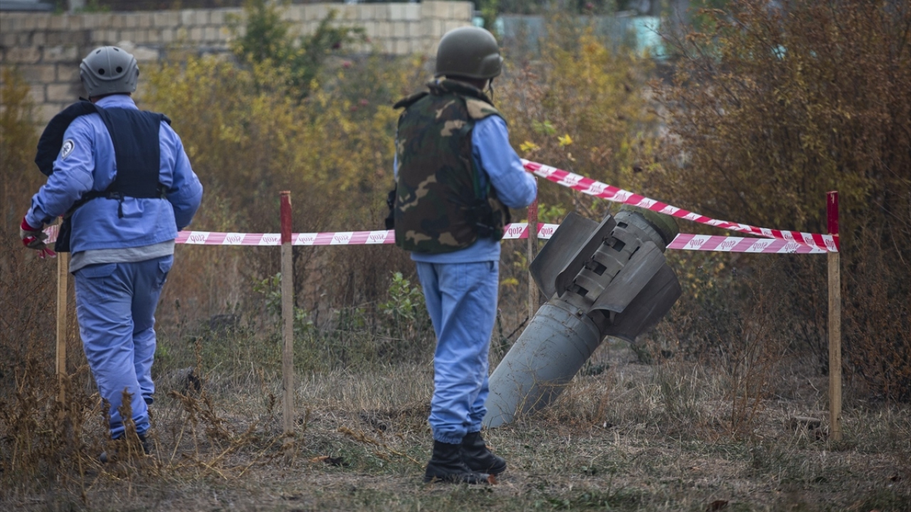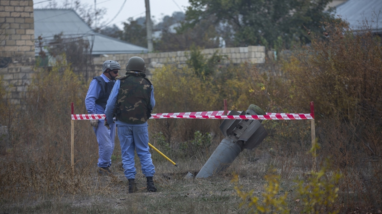 Azerbaycan'ın Terter kentinde bir evin bahçesine düşen ancak patlamayan Smerch füzesi, Azerbaycan Ulusal Mayın Temizleme Ajansı (ANAMA) uzmanları tarafından etkisiz hale getirildi.