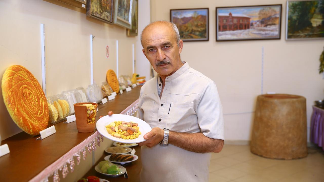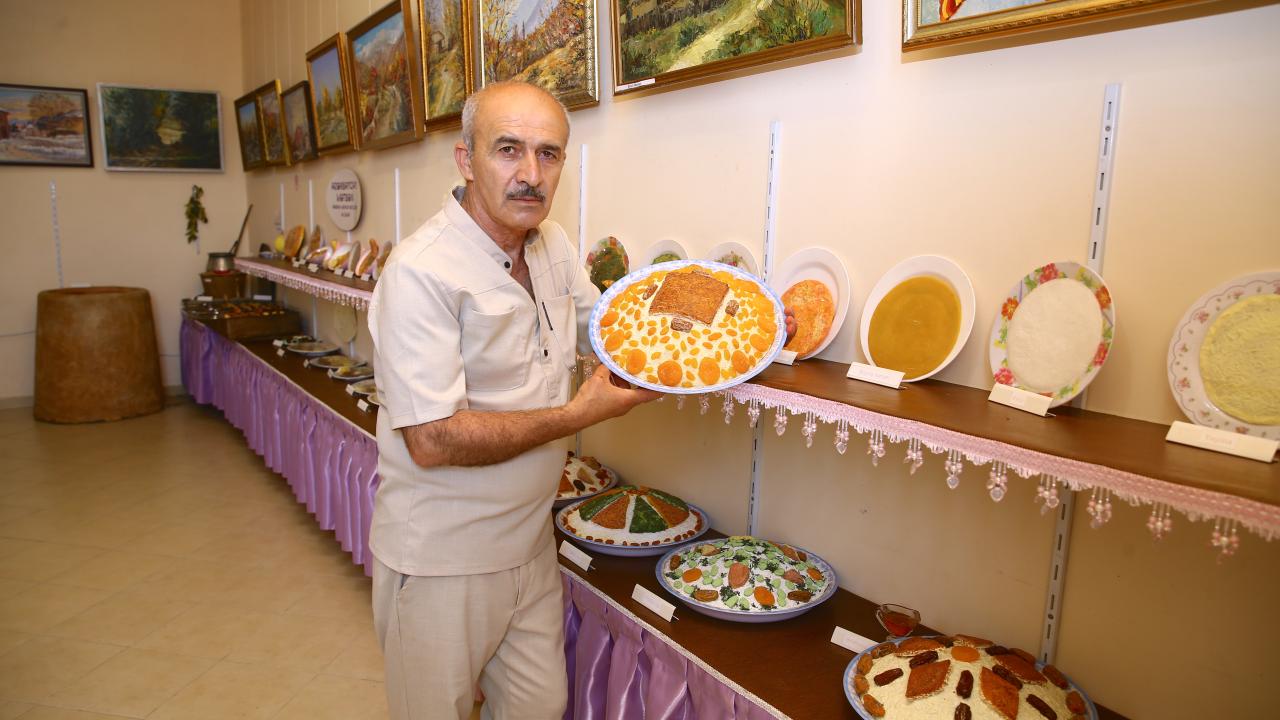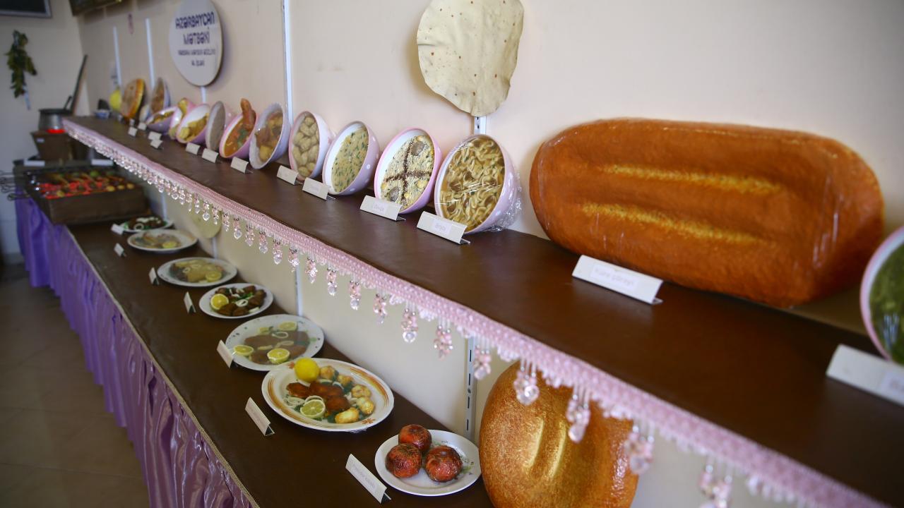 Tarihi ve doğal güzellikleriyle ünlü Şeki şehrinde 60 yaşındaki Azizli, kendisine tahsis edilen müzede Azerbaycan mutfağından yemek, tatlı ve içeceklerin maketlerini sergiliyor.
