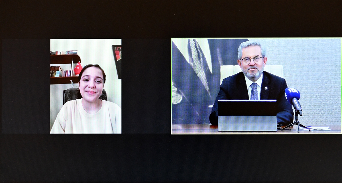 AÜ Rektörü Prof. Dr. Necdet Ünüvar, kesin kayıt için 23 Ağustos`ta ailesiyle Türkiye`ye gelecek Nasırlı`yla çevrim içi görüştü.