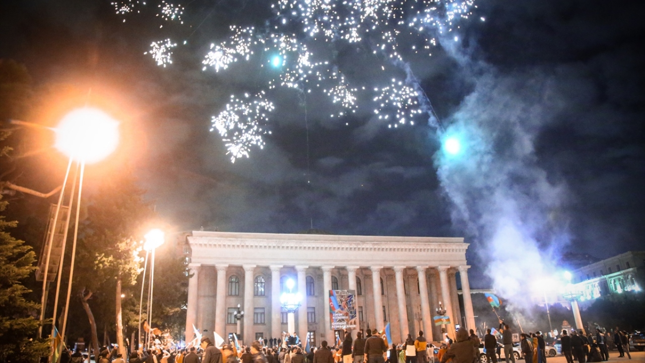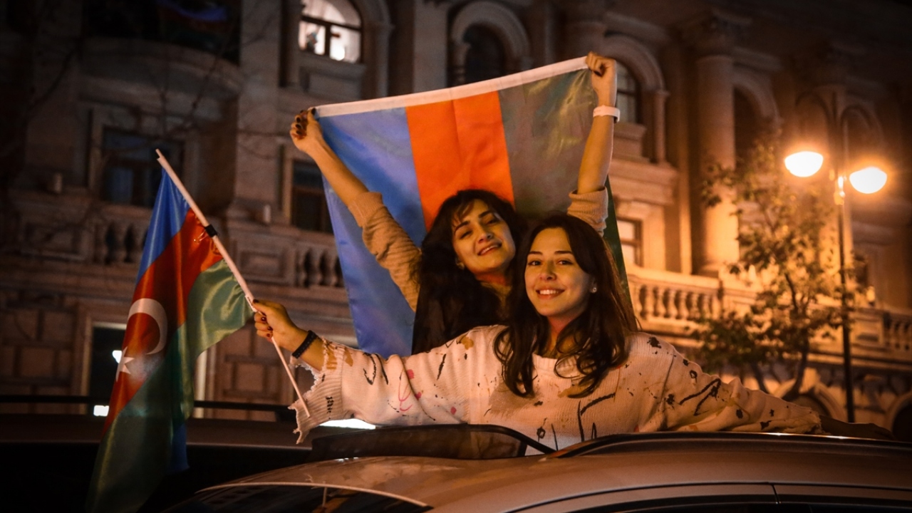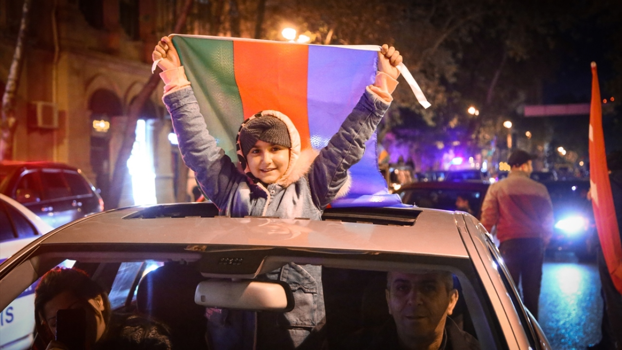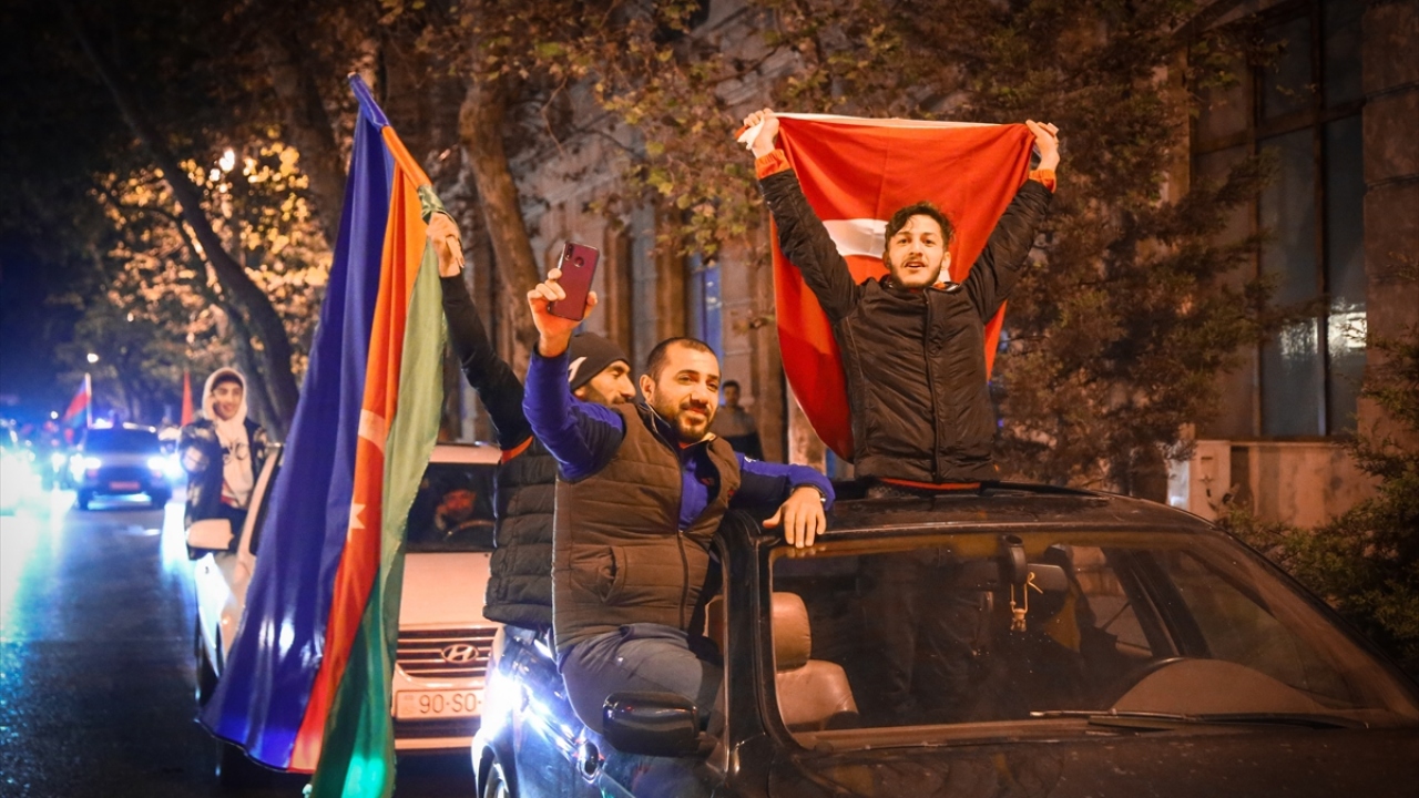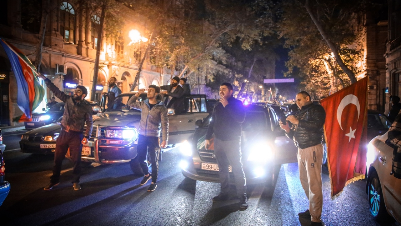 Başkent Bakü, saatin ilerlemesine rağmen coşkulu kutlamalara sahne oldu. Binlerce Bakülü ellerinde Azerbaycan ve Türk bayraklarıyla çıktıkları sokaklarda sevinç gösterisi yaptı.