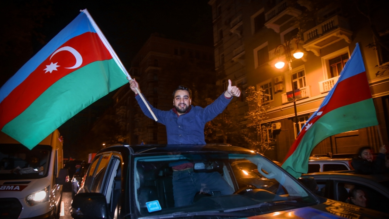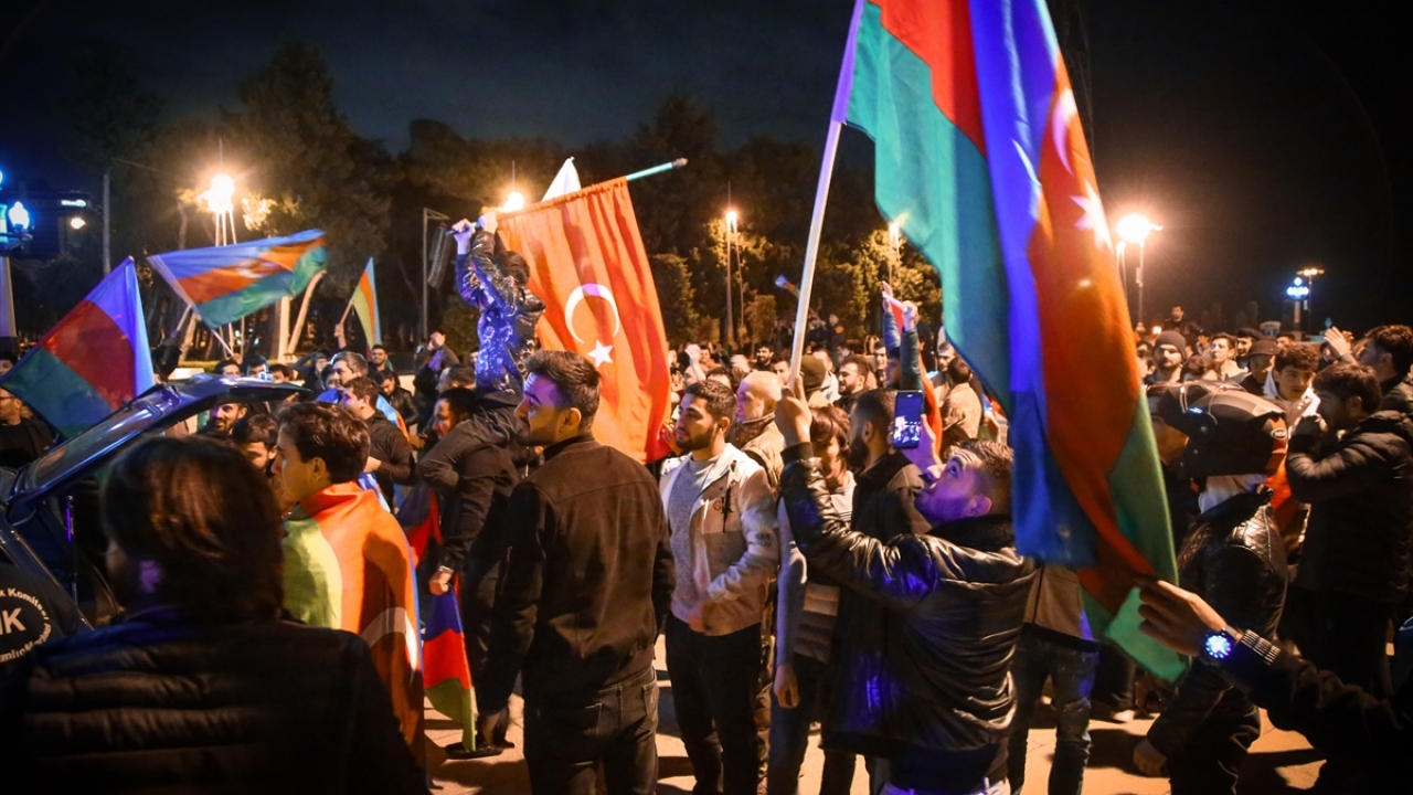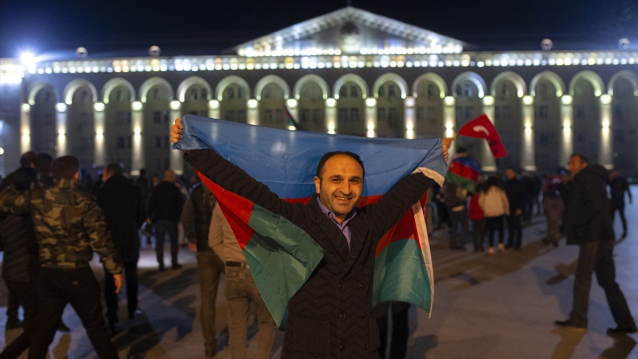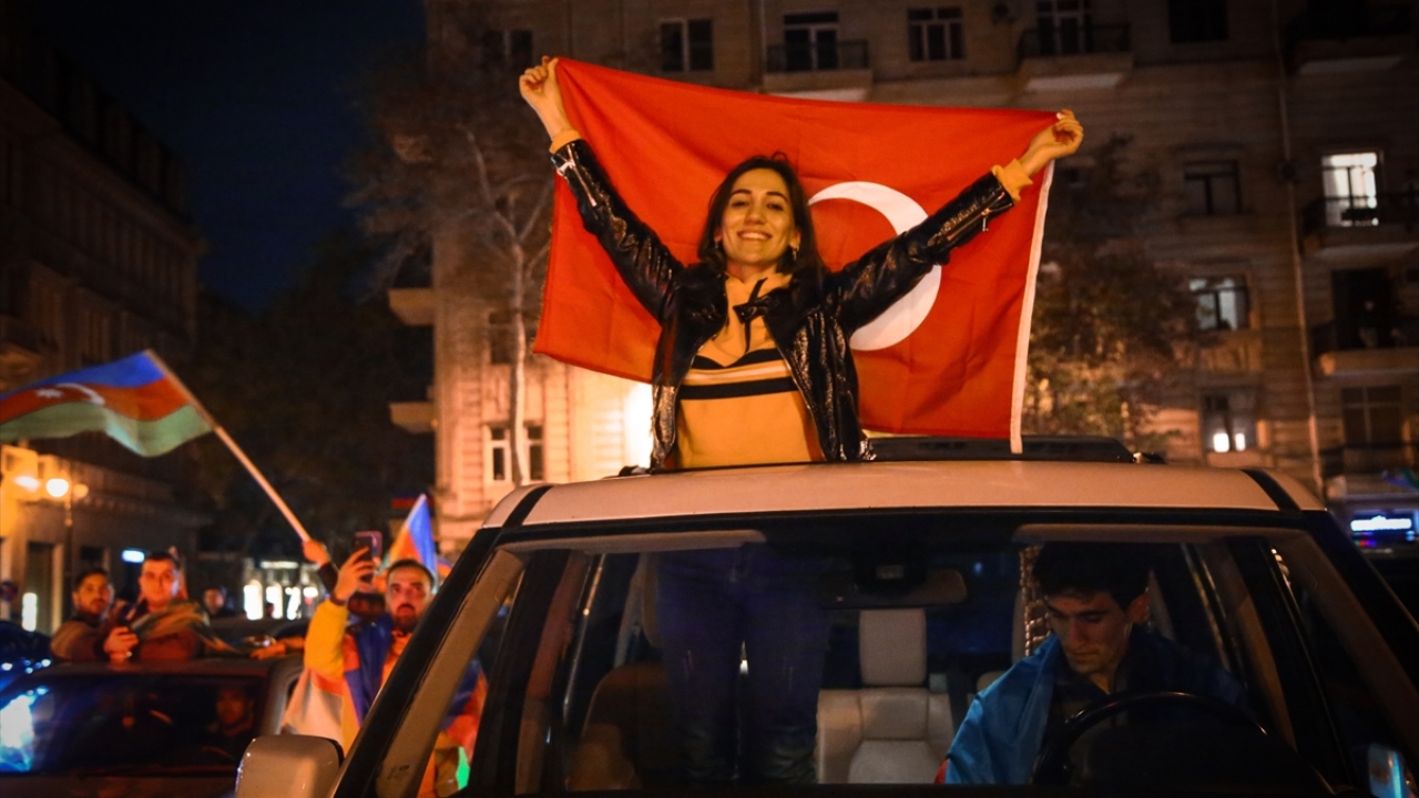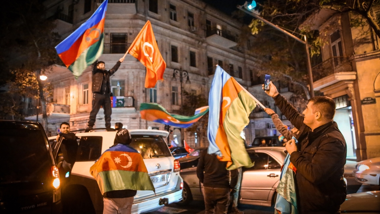 Başkent Bakü, saatin ilerlemesine rağmen coşkulu kutlamalara sahne oldu. Binlerce Bakülü ellerinde Azerbaycan ve Türk bayraklarıyla çıktıkları sokaklarda sevinç gösterisi yaptı.