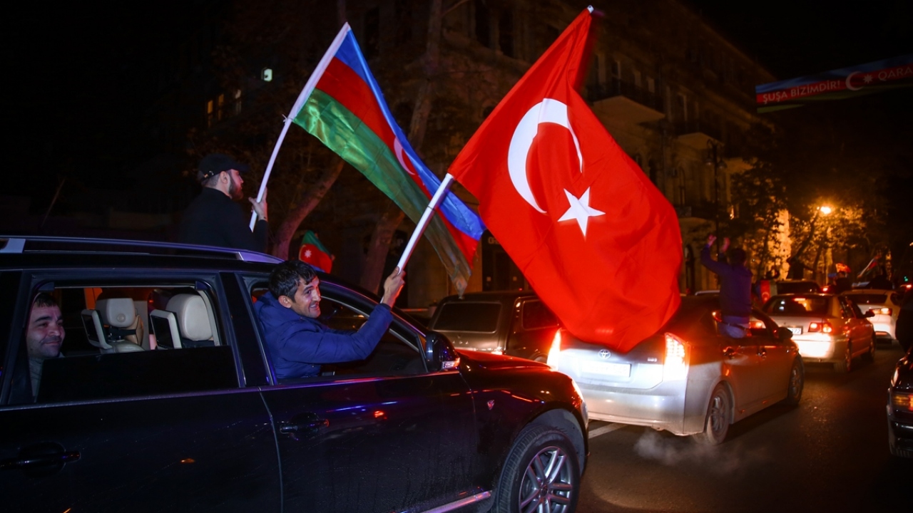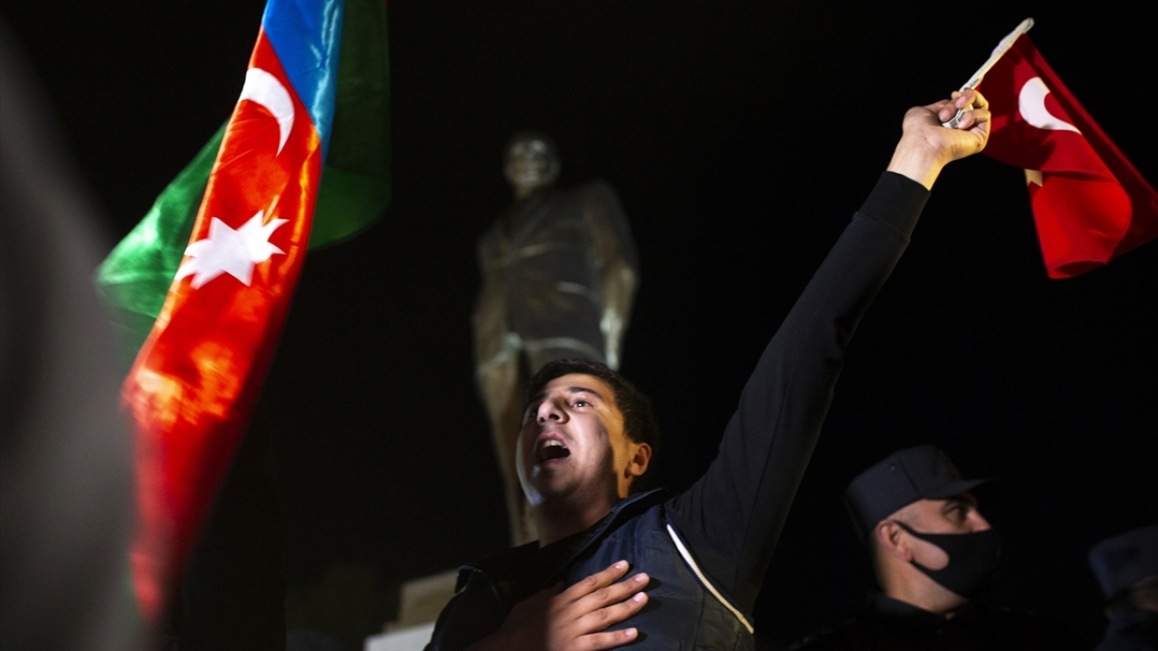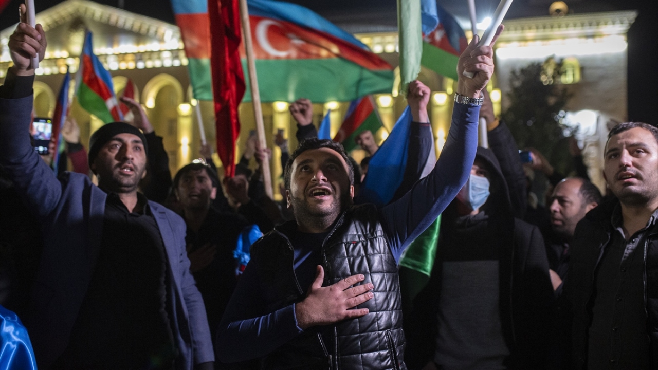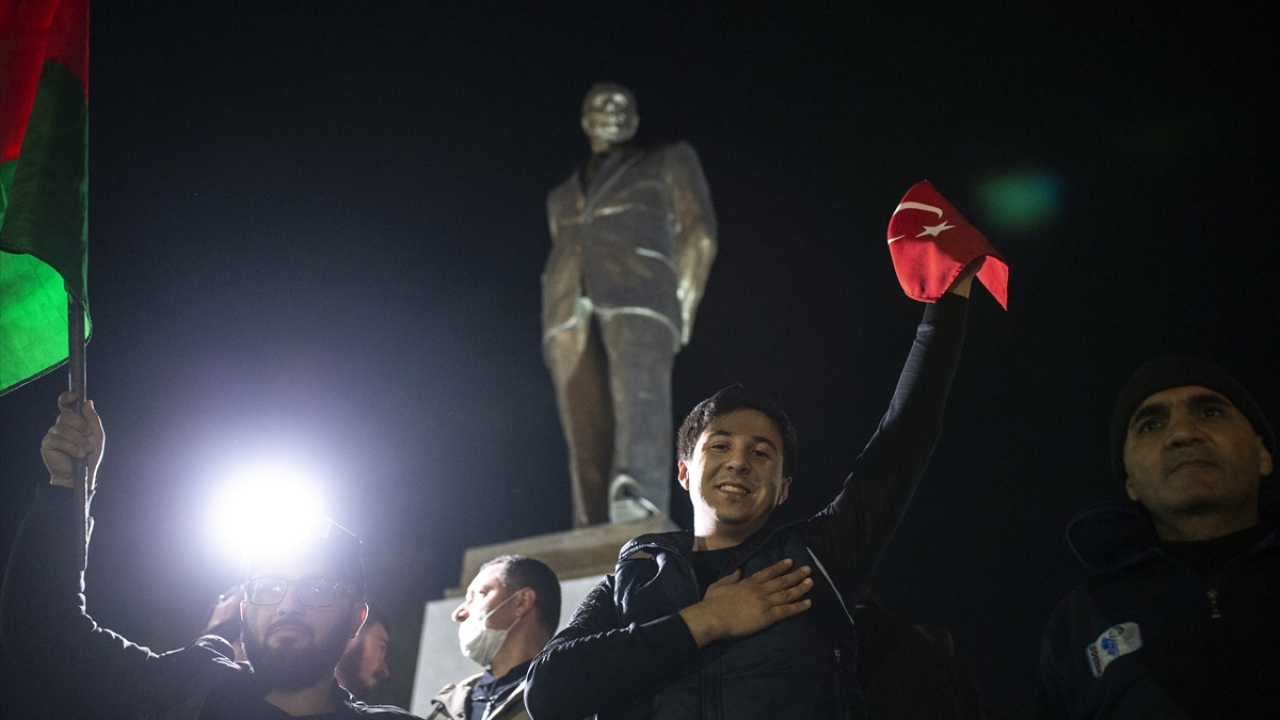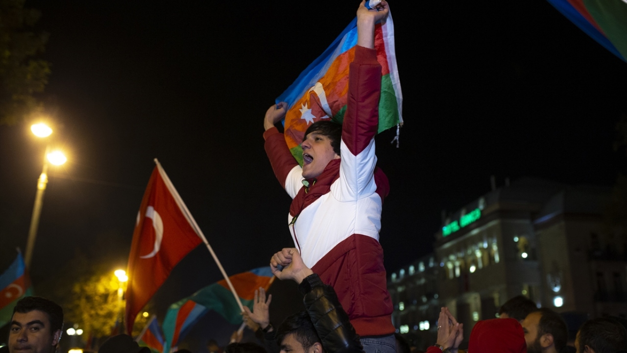 Başkent Bakü, saatin ilerlemesine rağmen coşkulu kutlamalara sahne oldu. Binlerce Bakülü ellerinde Azerbaycan ve Türk bayraklarıyla çıktıkları sokaklarda sevinç gösterisi yaptı.