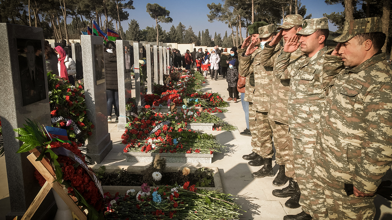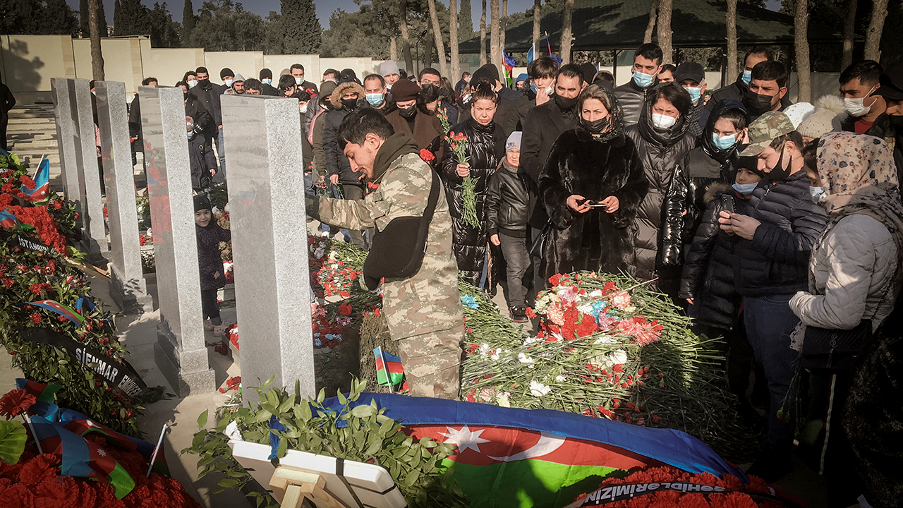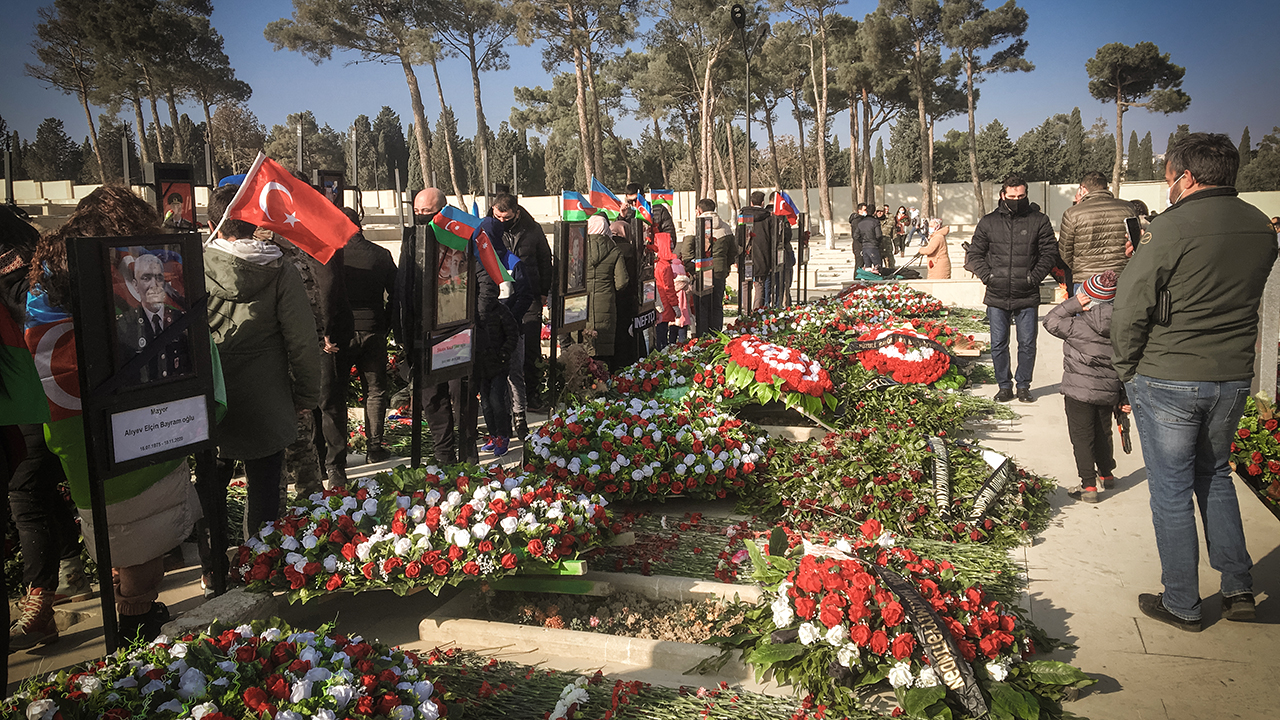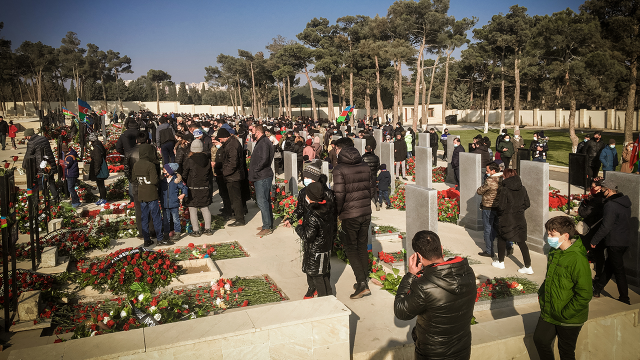 Azerbaycan halkı, 2021'in ilk günüde, Ermenistan'ın işgali altındaki toprakları kurtarmak için girdikleri savaşta canlarını feda eden askerlerin defnedildiği şehitliklere gitti.