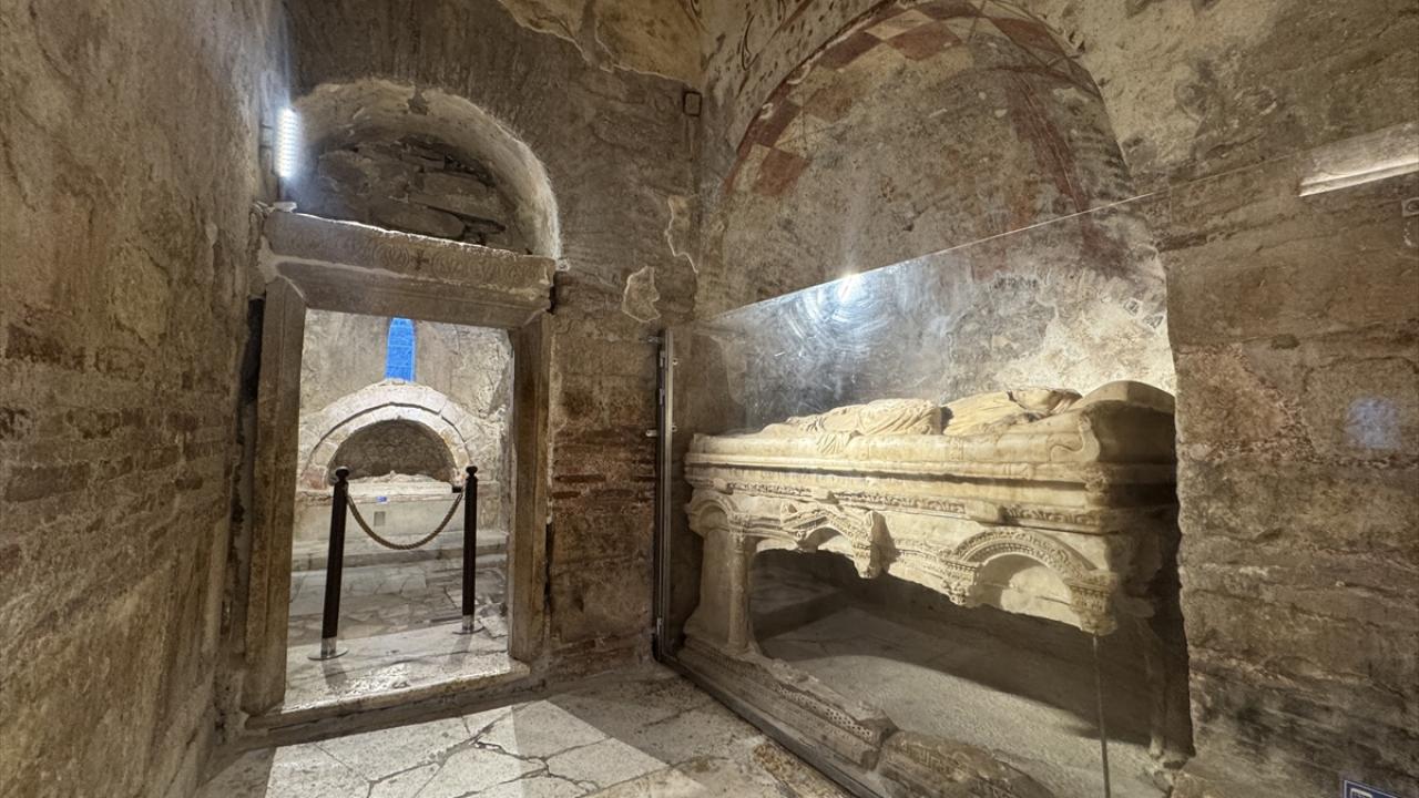 Kilisenin 2022`de bazilikaya ait erken evrelerini açığa çıkardıklarını belirten Fındık, "Kazı çalışmalarımız yeni bilimsel veriler sunmaya devam ediyor. Proje kapsamında kilisenin avlusunu güneyden sınırlandıran 20 metre uzunluğundaki iki katlı ek yapıda çalışmalar gerçekleştiriyoruz. Bu yapının içindeki sondaj çalışmalarında sürpriz bir lahitle karşılaştık. Bu bizi elbette çok mutlu etti" dedi.