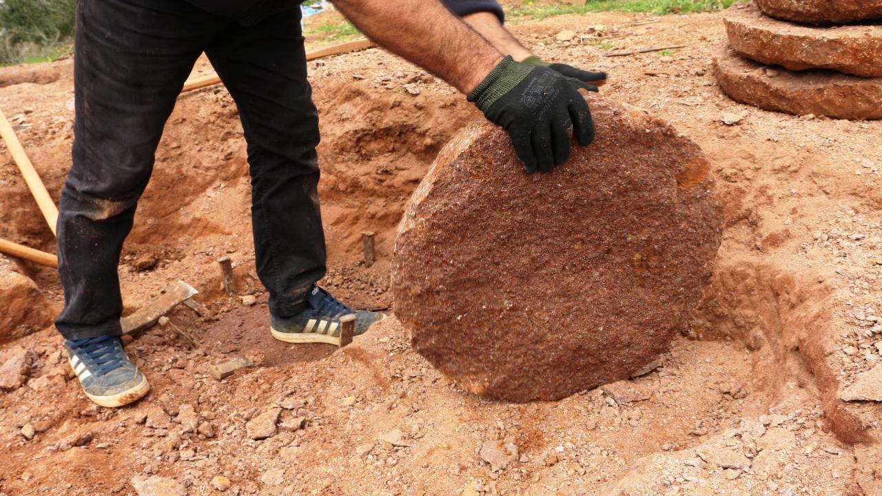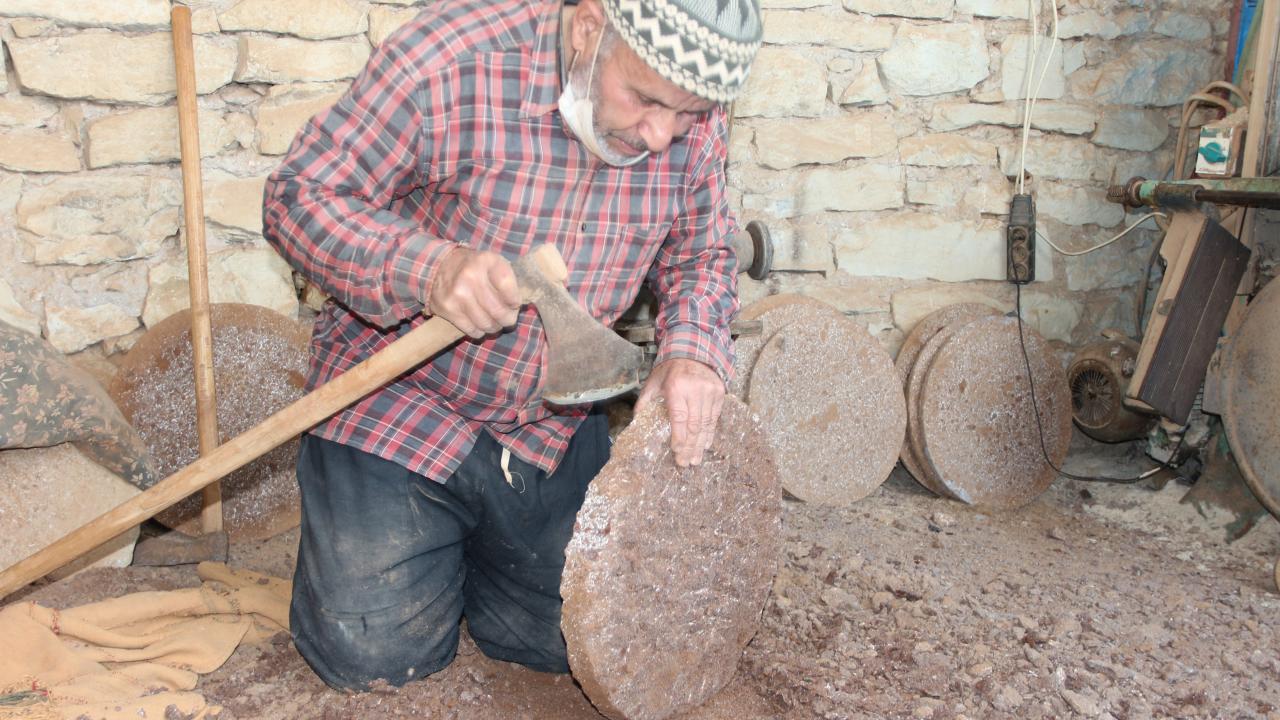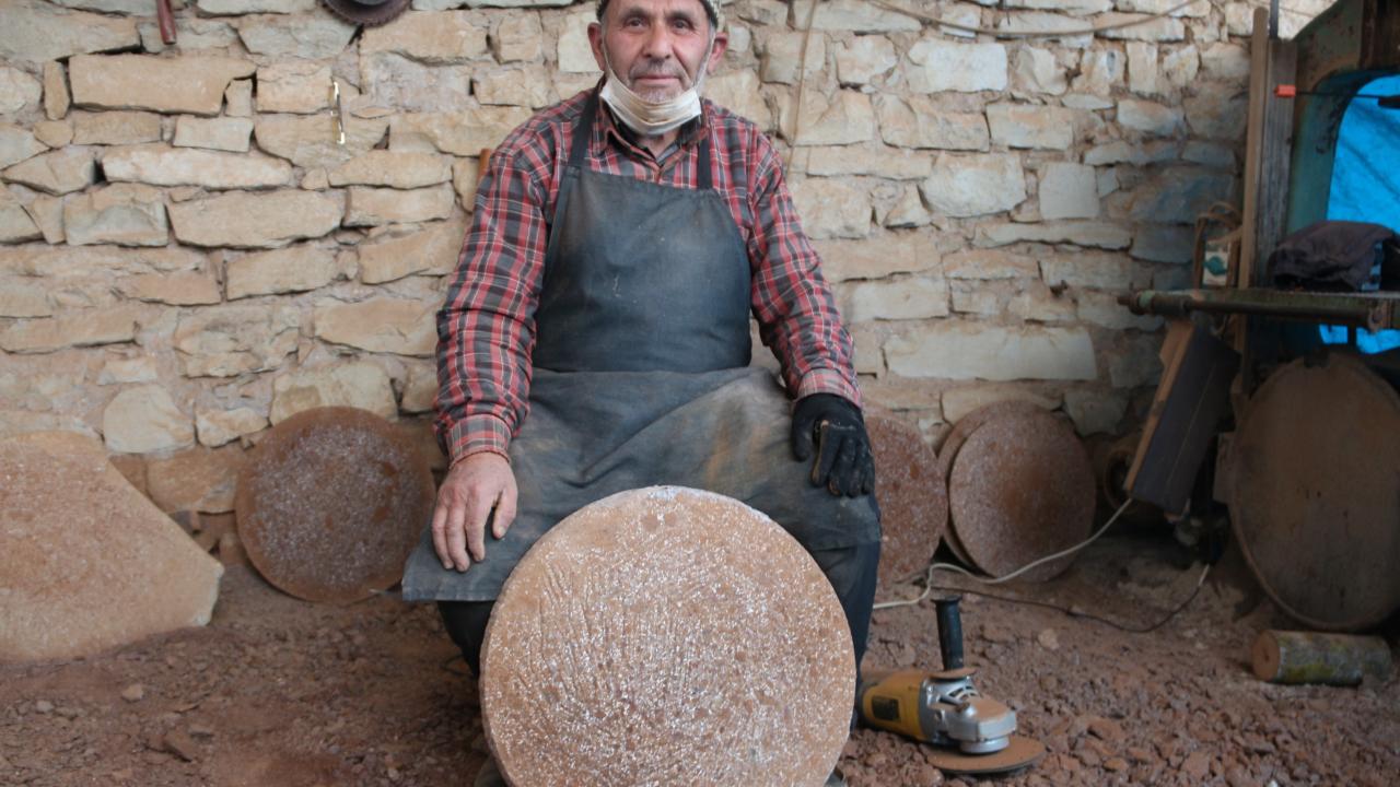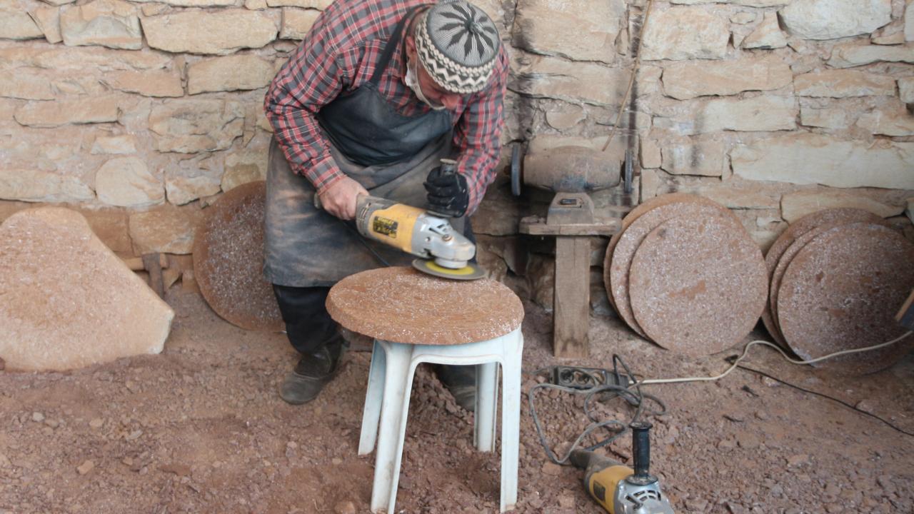 Kırsal Duraçalı Mahallesi`nde yaşayan taş ustası Ali Gök ve oğlu Ender Gök`ün doğadan el aletleri yardımıyla çıkardığı taşlar, uzun ve zahmetli yontma sürecinin ardından yuvarlık ve ince bir şekil alıyor.