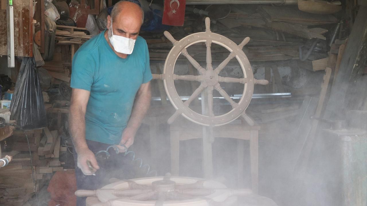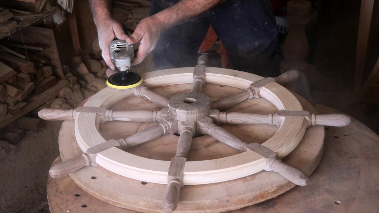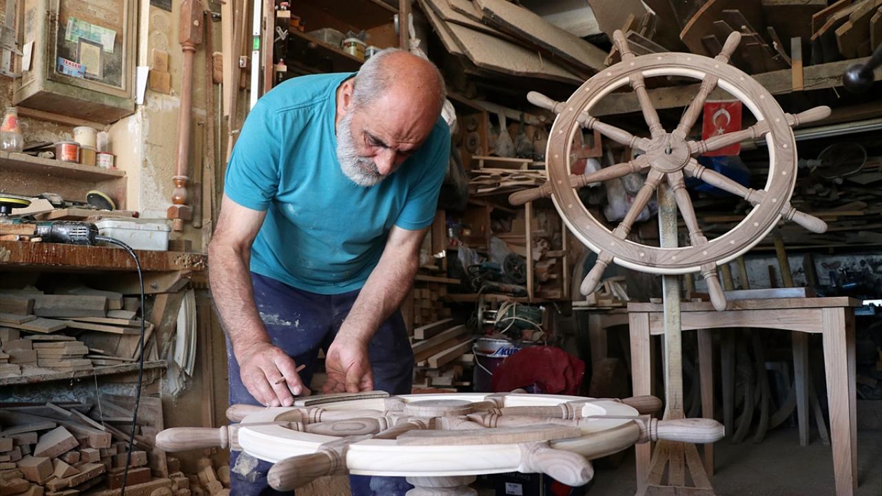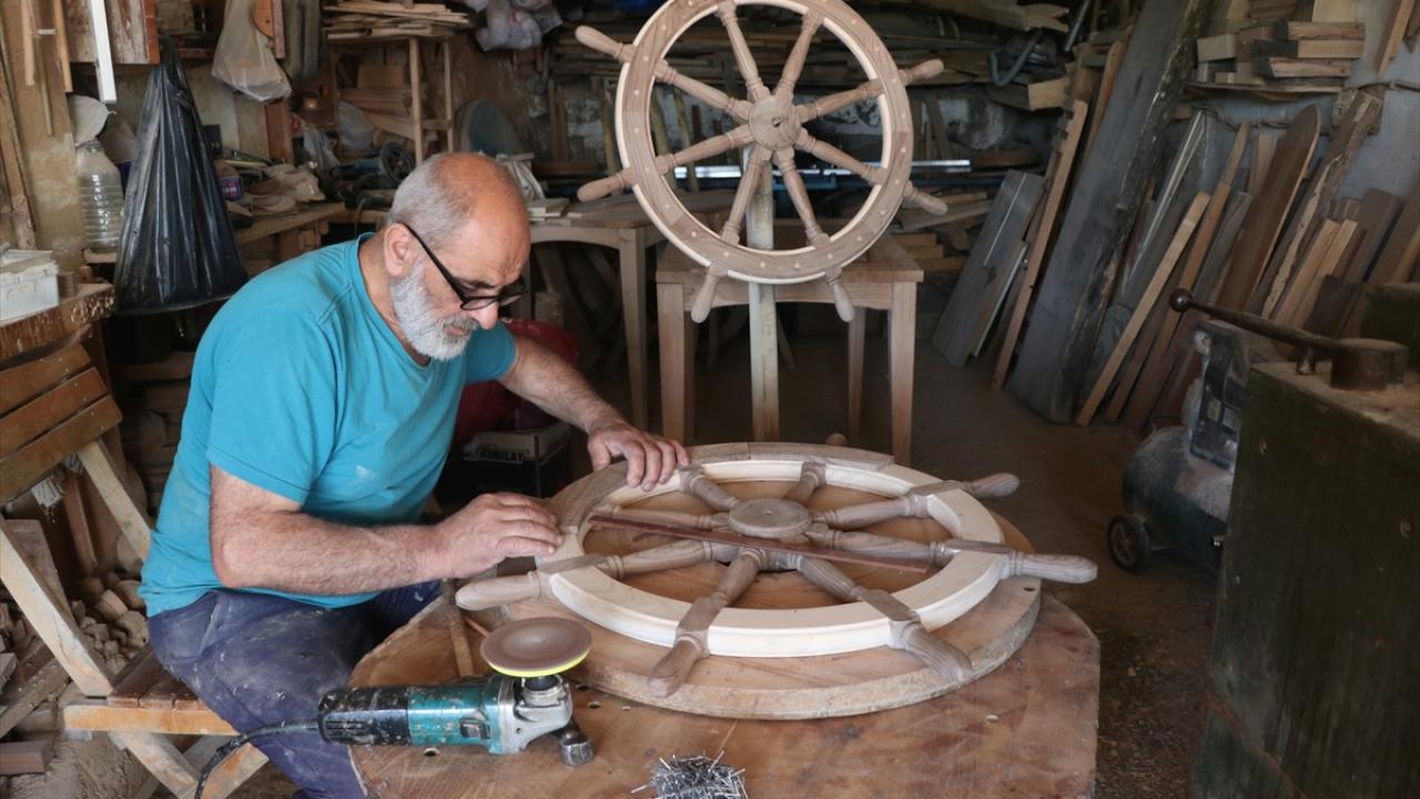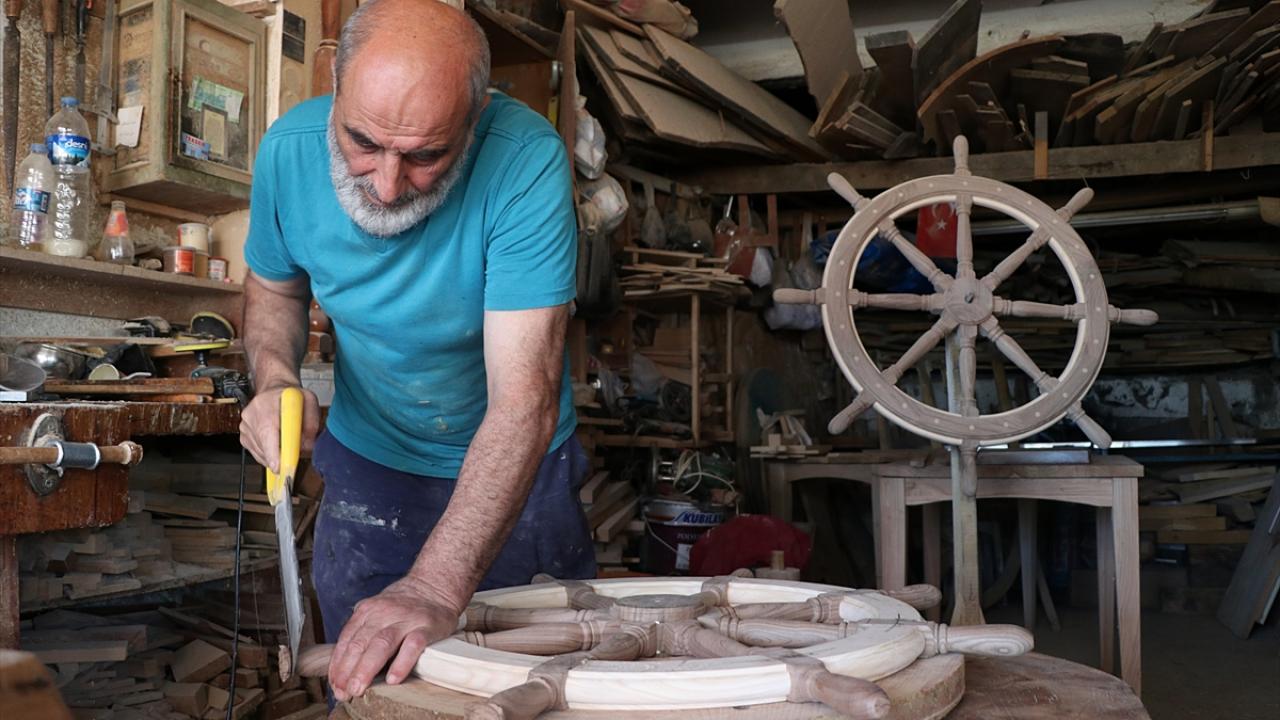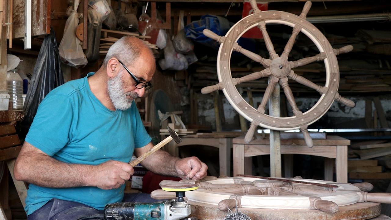 Gemi dümeninden tasarım ve dekorasyon ürünleri de yapan 65 yaşındaki Sebahattin Saraç, 15 yıldır baba mesleğini sürdürdüğünü söyledi.