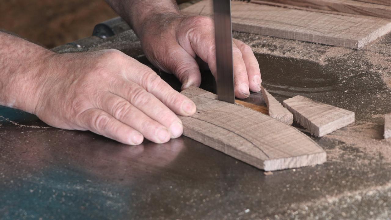 İşe ceviz, gürgen, kestane, meşe, akasya ve dut ağaçlarını kurutmakla başlayan Saraç, yaklaşık 1,5 yıllık kurutma işleminin ardından elde ettiği parçalara şekil vererek dümen üretiyor.