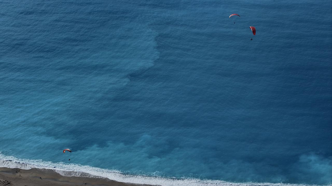 Tatilciler, pilotların yaptığı akrobasi hareketleriyle yerden yaklaşık 2 bin metre yükseklikte heyecan dolu dakikalar yaşıyor.