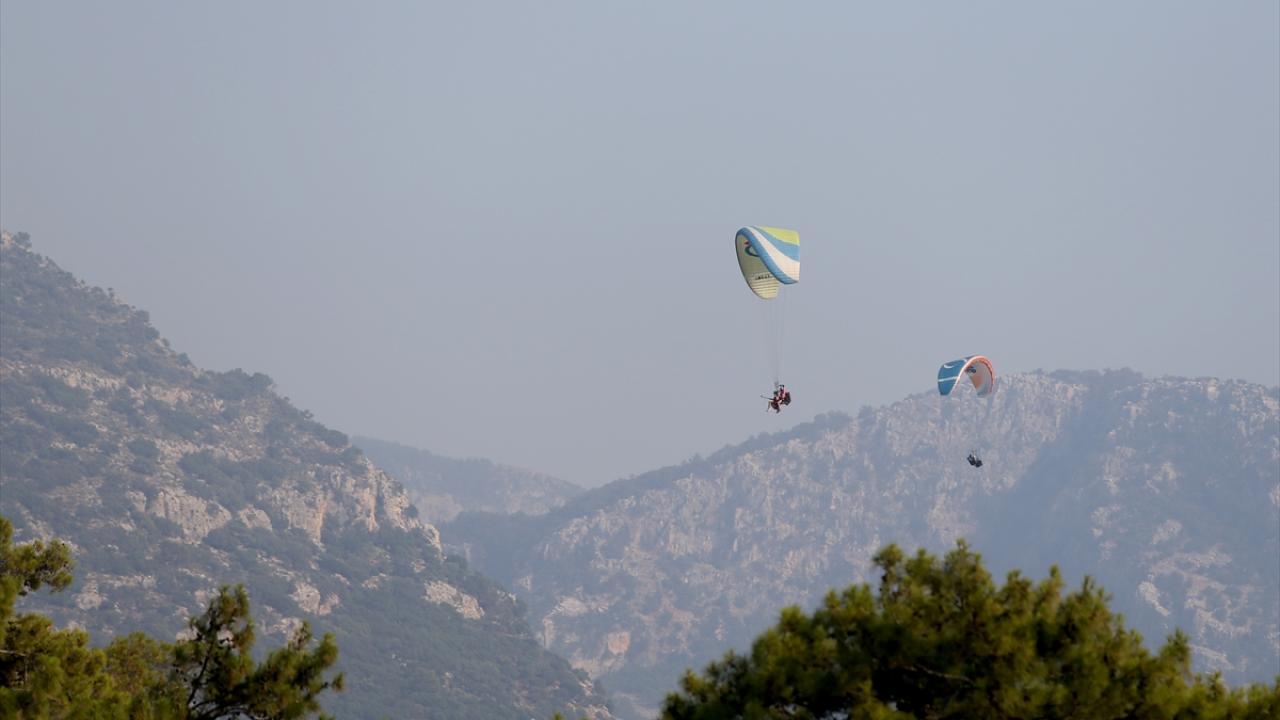 Kara yolu ya da teleferikle Ölüdeniz Mahallesi`ndeki 1965 rakımlı Babadağ`a ulaşan macera tutkunları, yamaç paraşütüyle atlayarak Ölüdeniz`in manzarasını kuş bakışı izleme fırsatı bulup, yaklaşık 2 bin metre yükseklikte heyecan dolu dakikalar yaşıyor.