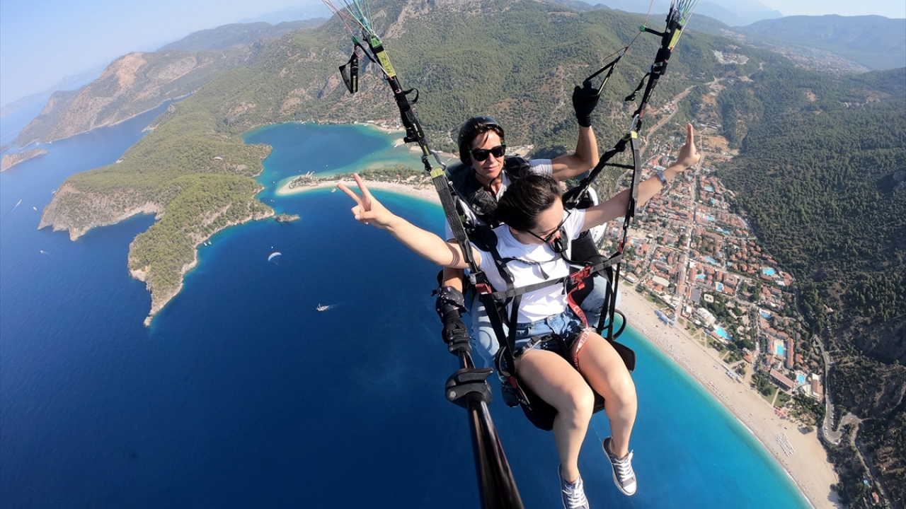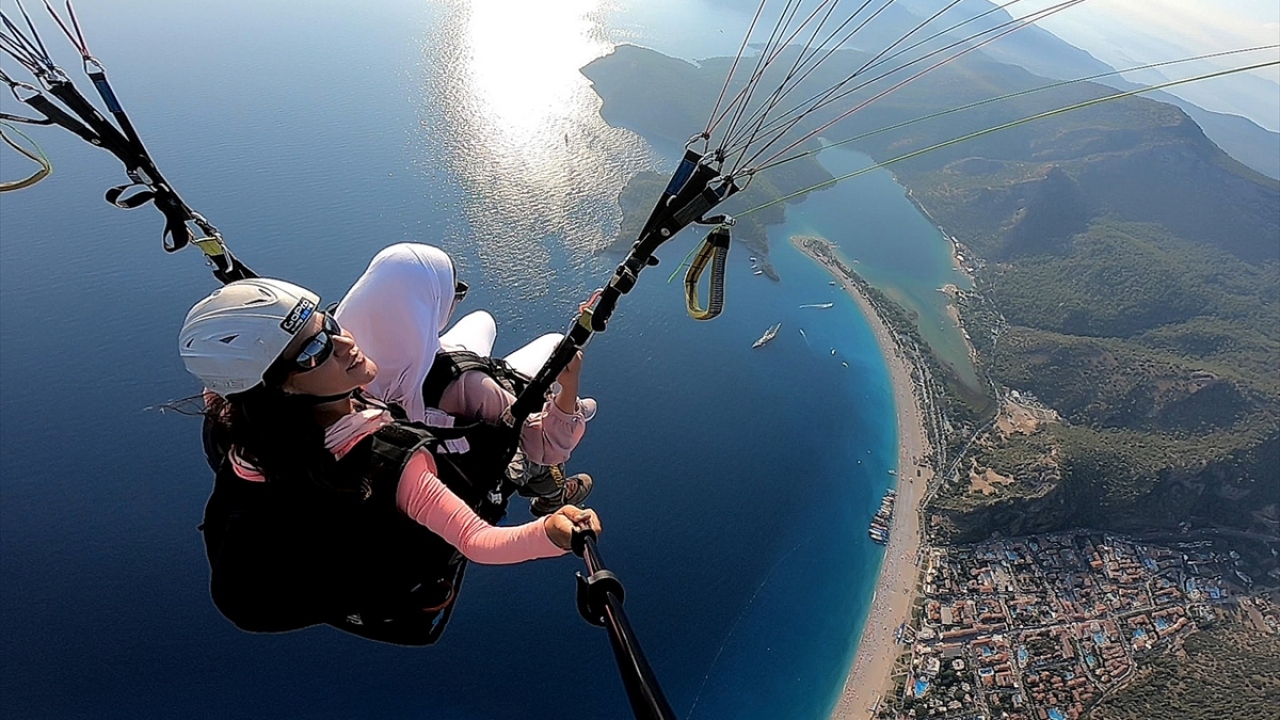 Ölüdeniz Yamaç Paraşütü Kooperatifine bağlı, farklı firmalarda çalışan 300 yamaç paraşütü pilotunun arasında, 7 kadın tandem (ikili) uçuş yapıyor.