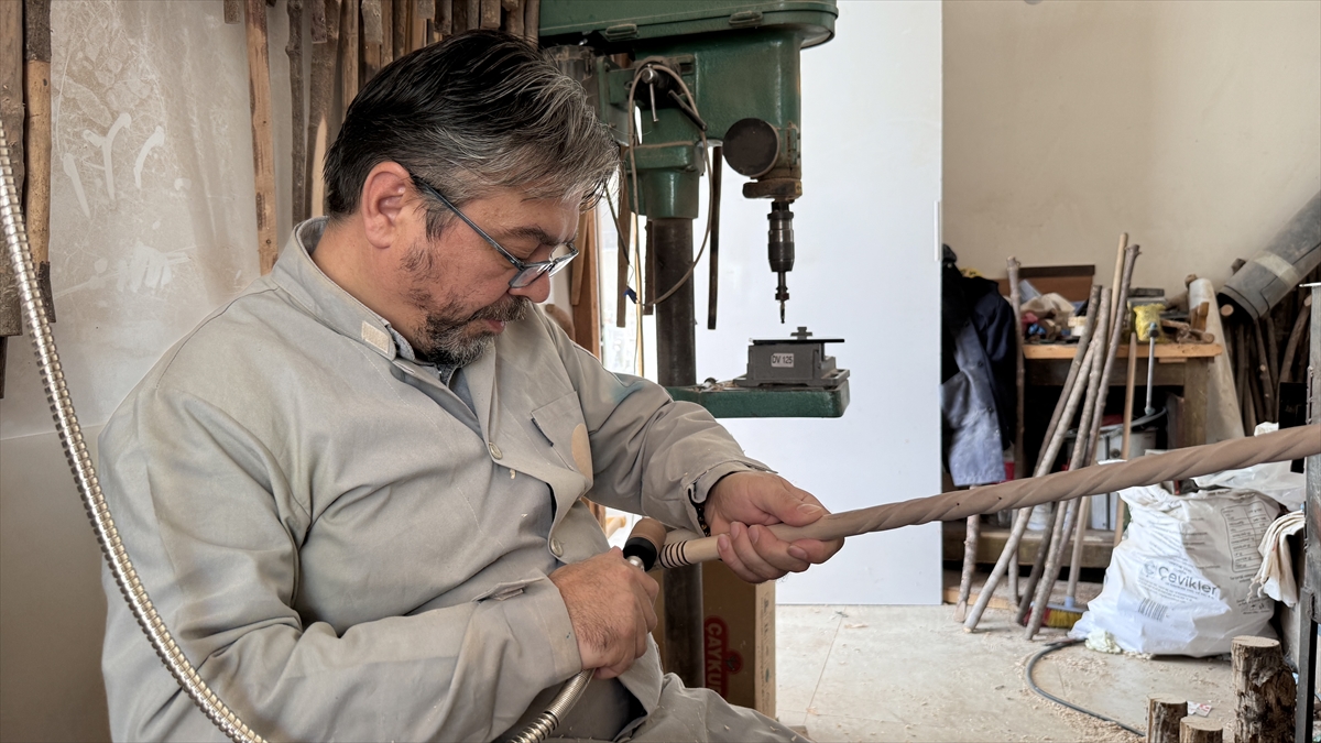 Babasından öğrendiği Devrek bastonu yapımında yeni ustalar yetiştiriyor