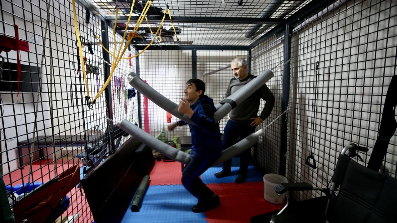 Saruhan, Abdülbaki`nin 3 yıl önce artık hastanelere gitmek istemediğini söylemesi üzerine gelişimi için farklı araştırmalar yaptığına değinerek, evinin alt katında oğluna fayda sağlayacak alan tasarladığını, buradaki çalışmalar sayesinde çocuğunun kısa mesafede bastonlarıyla düşmeden yürüyebildiğini, bisiklet kullanabildiğini kaydetti.