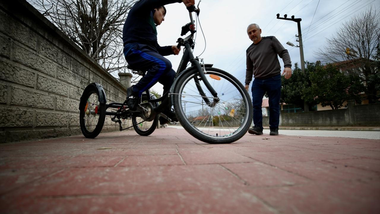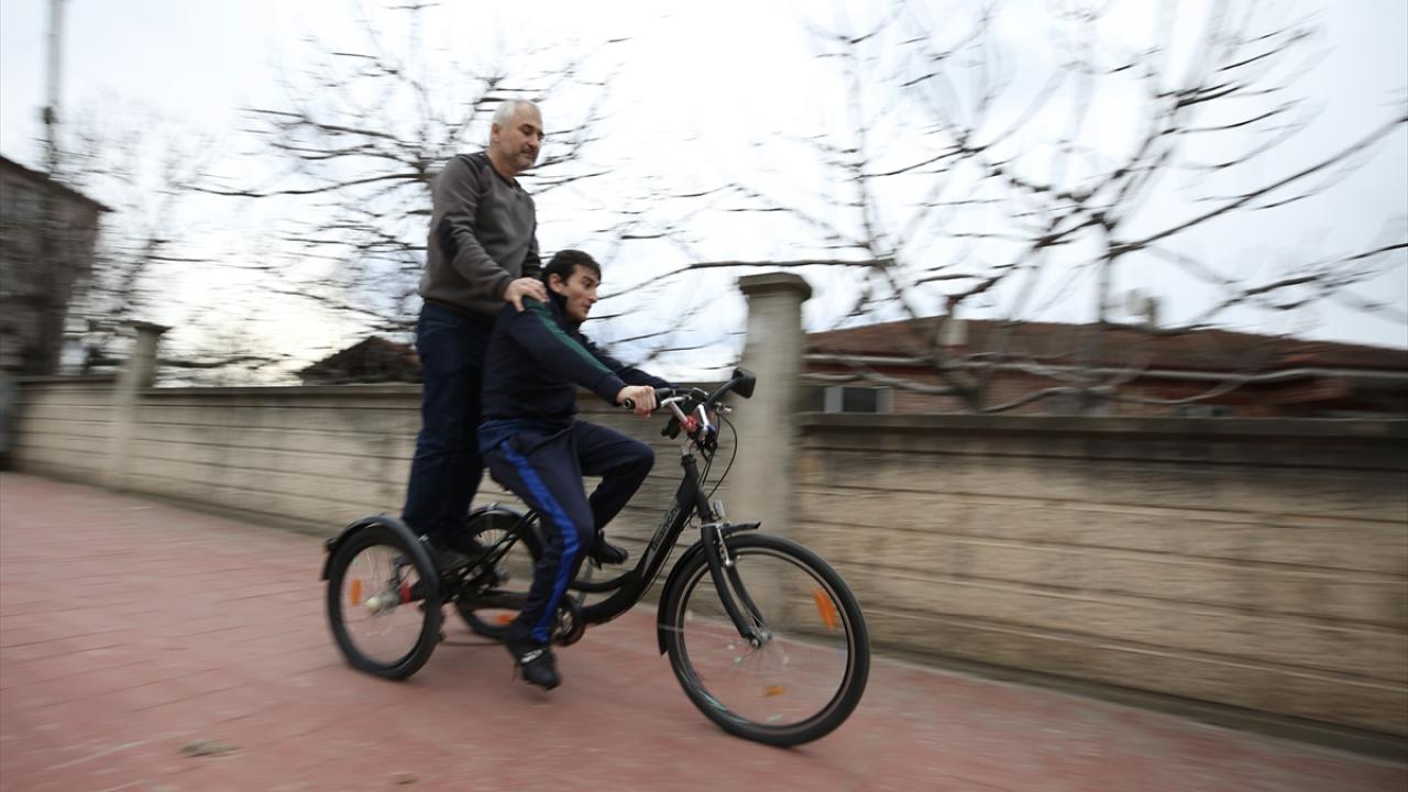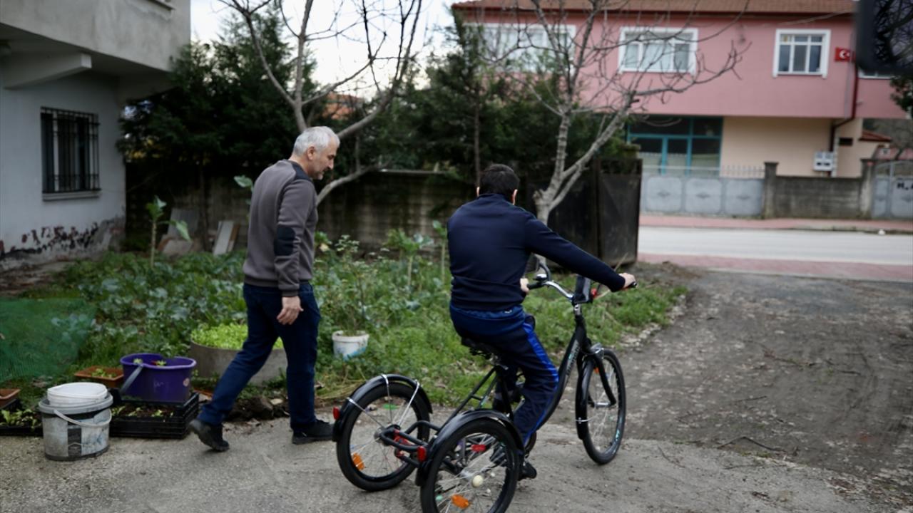 Sakarya'da yaşayan serebral palsili (beyin felci) 22 yaşındaki Abdülbaki Saruhan, kendisini hayatının merkezine koyan babasının yıllar süren azmi ve sabrı sayesinde yürüyememesine rağmen üç tekerlekli bisiklet sürebilmenin mutluluğunu yaşıyor.
