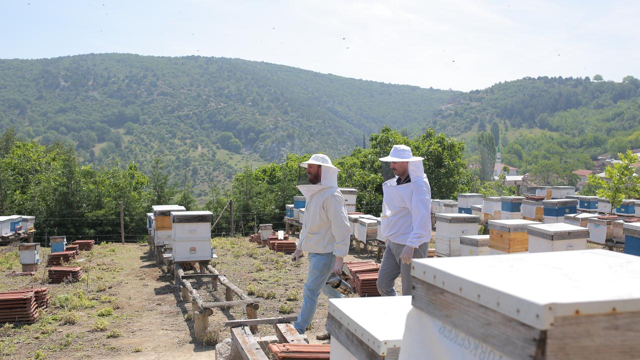Bilecik'te yıllardır arıcılık yapan babasından devraldığı işi devlet desteği büyüterek 200 kovana ulaşan 32 yaşındaki girişimci Mehmet Demirci, yılda 2,5 tonu aşkın bal üretiminin yanı sıra arı ve arı ürünleri yetiştiriyor.