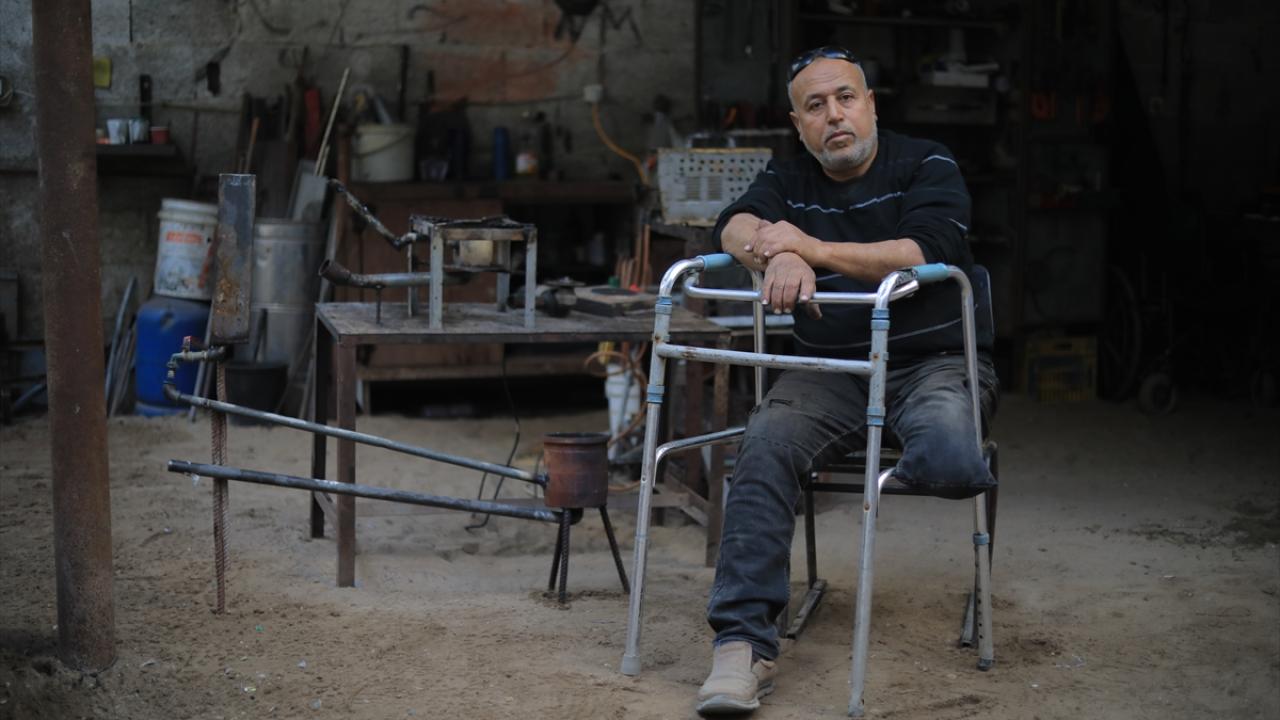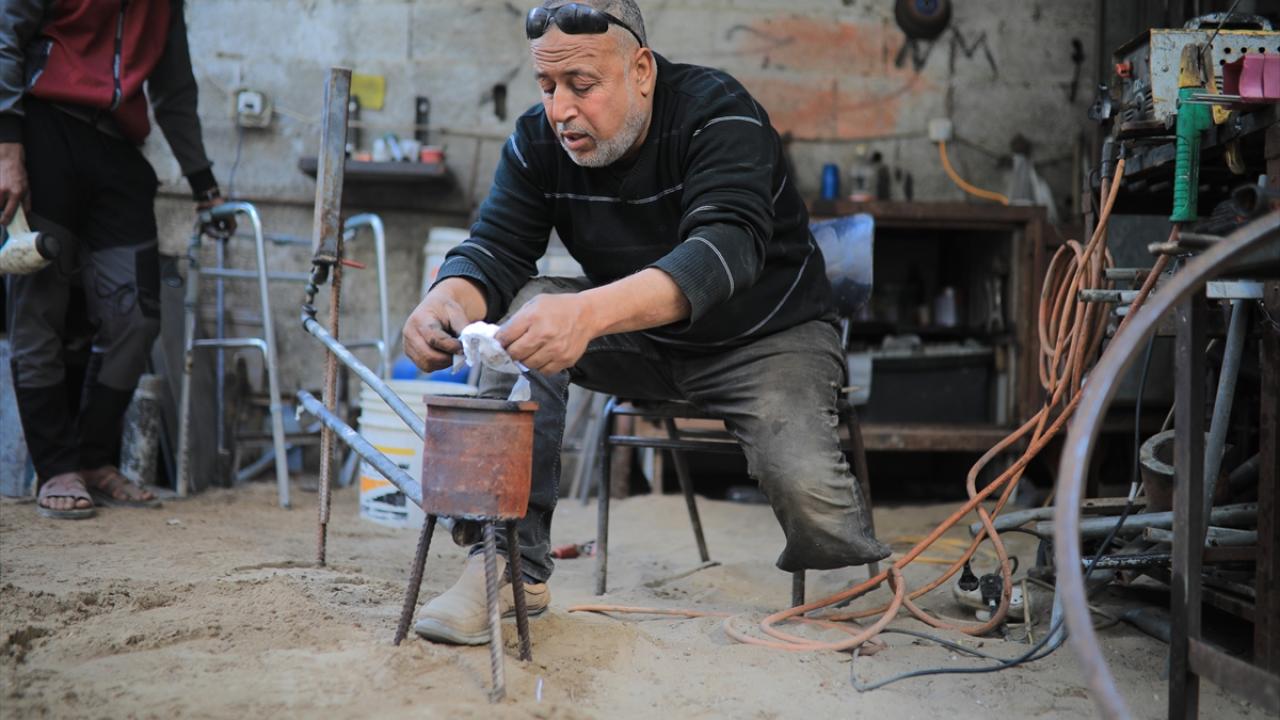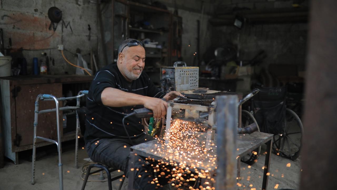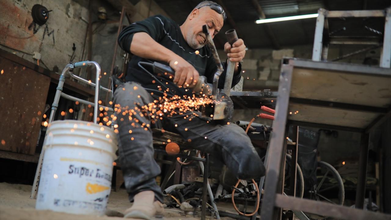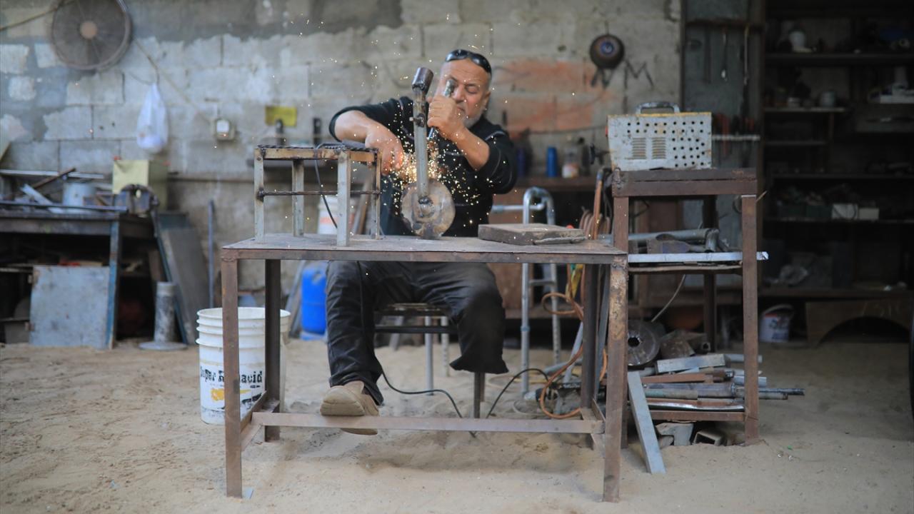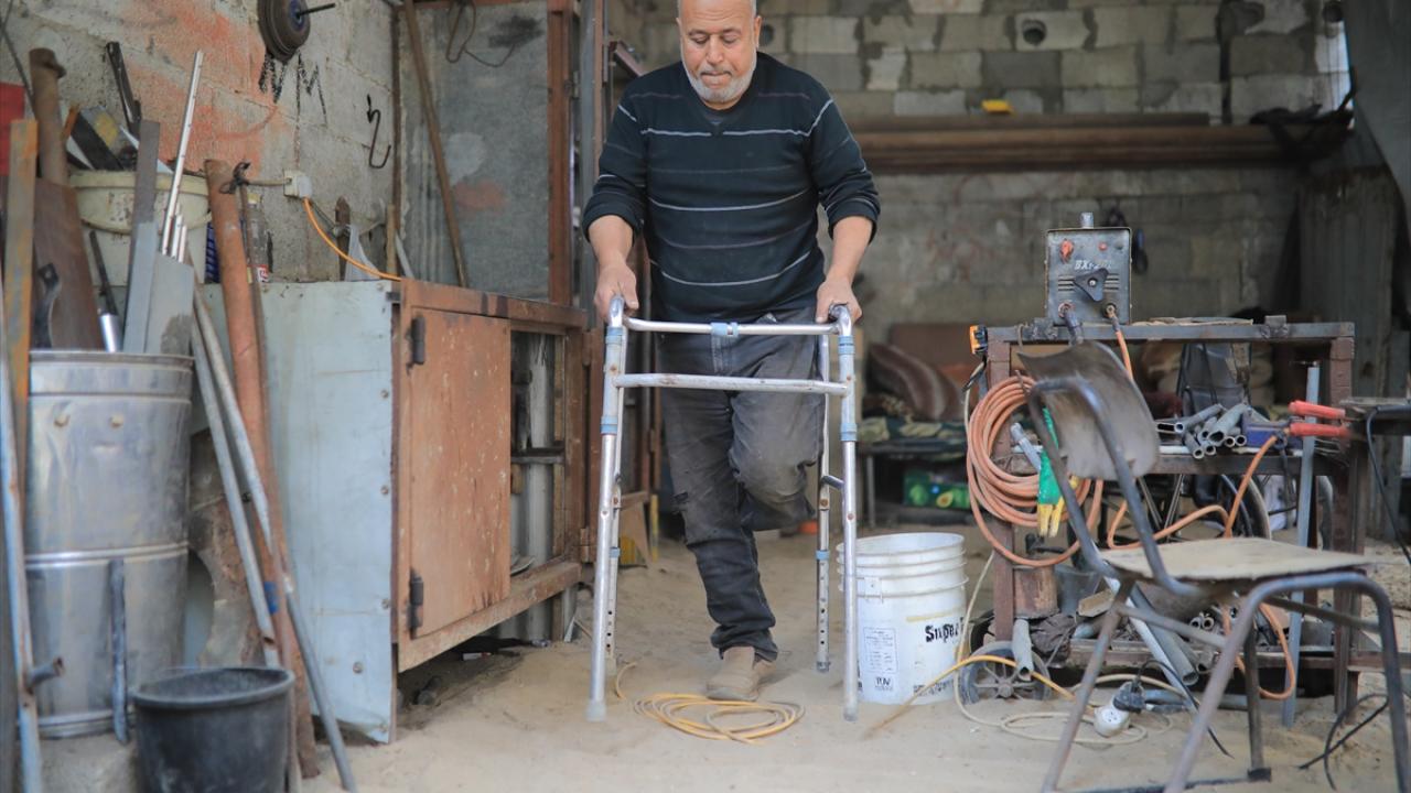 Gazze Şeridi’nin orta kesimindeki Nuseyrat Mülteci Kampı’nda yaşayan demir ustası Nahid el-Masri, İsrail'in yerinden edilen sivillerin sığındığı bir okulu hedef alması sonucu sol bacağını kaybetti.