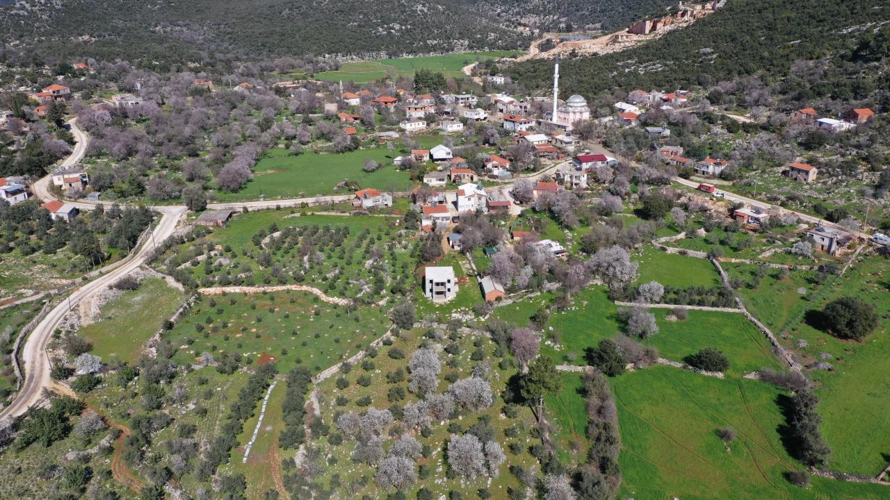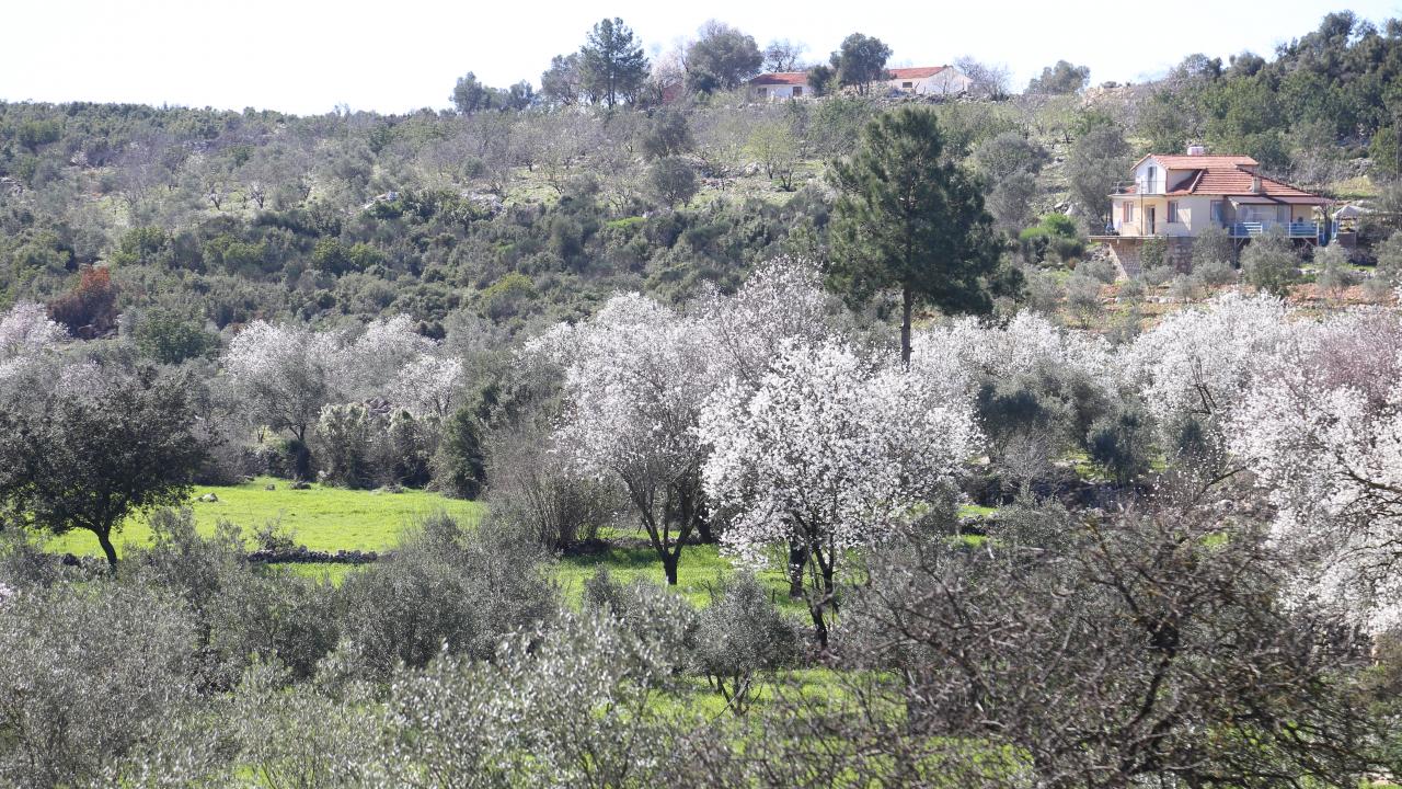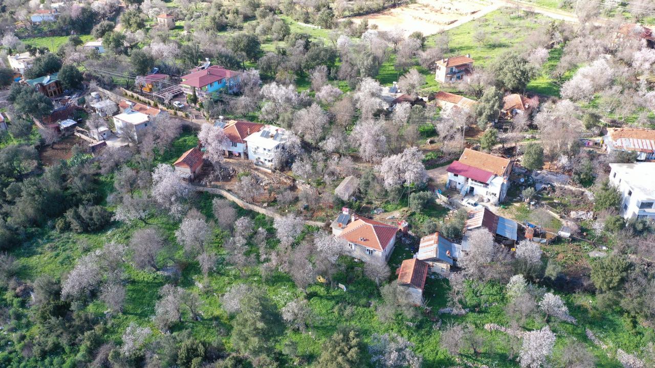 Antalya'nın Kaş ilçesinde badem ağaçları çiçek açtı. Ağaçların çiçekleri görsel şölen sundu.