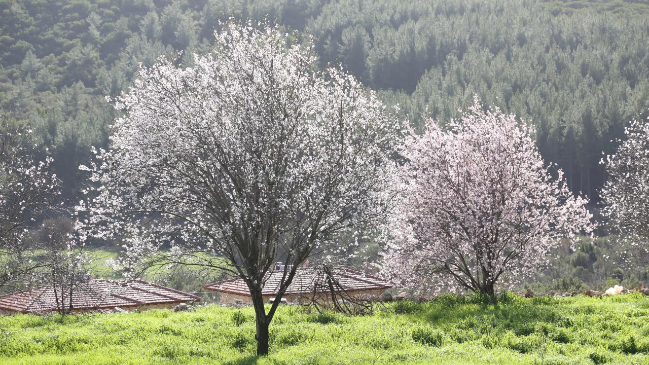 Badem ağaçları çiçek açtı