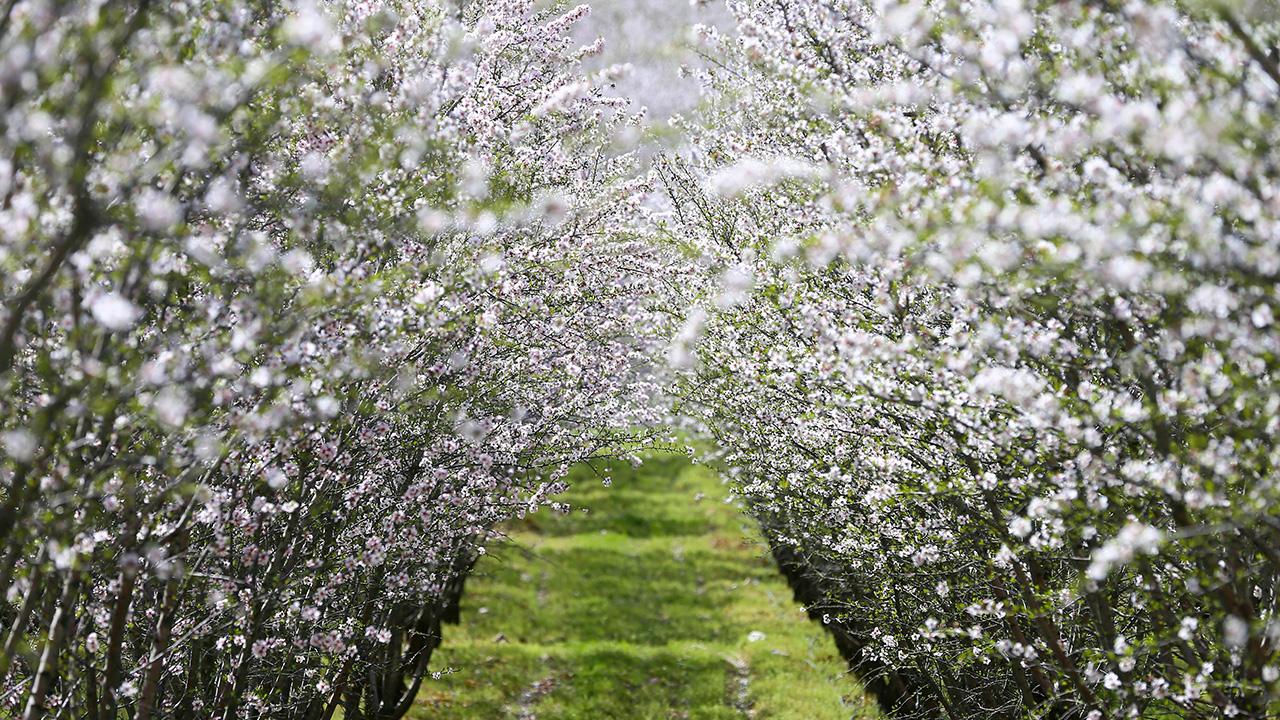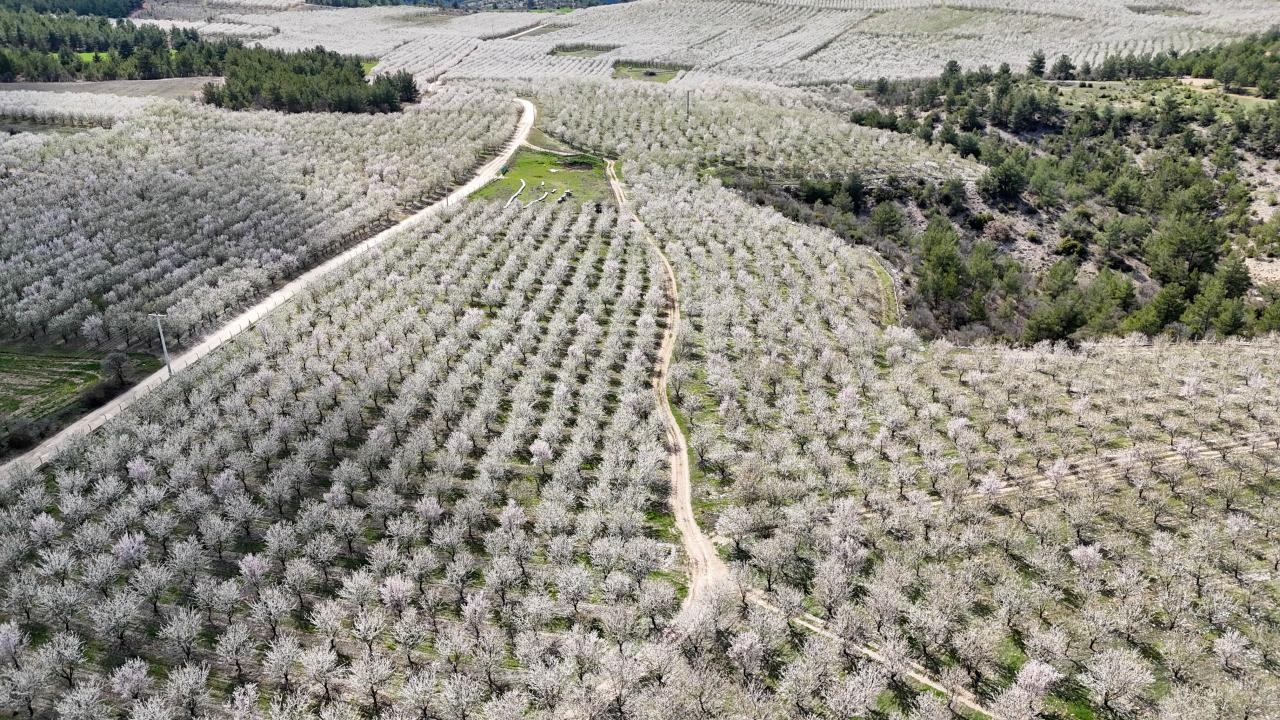 Uşak'ta baharın gelmesiyle birlikte kentteki badem ağaçları çiçek açtı. Ulubey ilçesinde yaklaşık 2 bin dekarlık badem bahçesi de ağaçların çiçek açmasıyla birlikte beyaza büründü.
