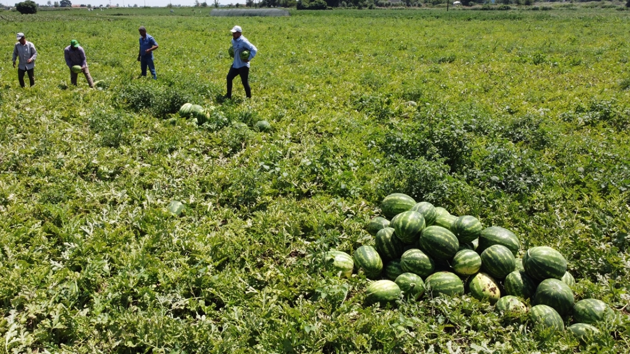 Karpuz üreticileri ise ürünün tarladan satılmasının kendilerini sevindirdiğini dile getirdi.
