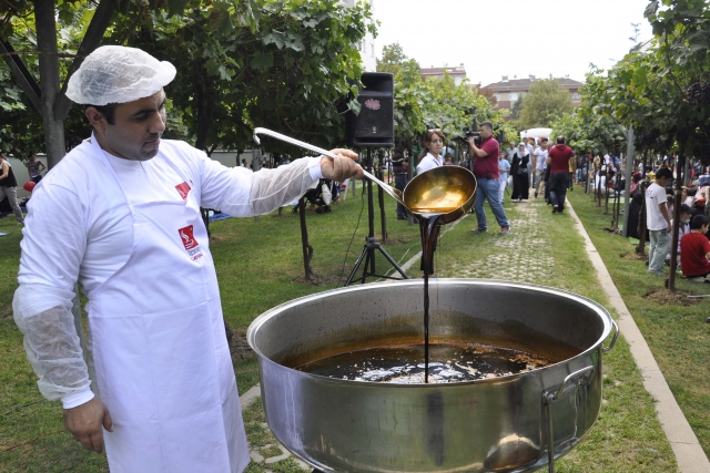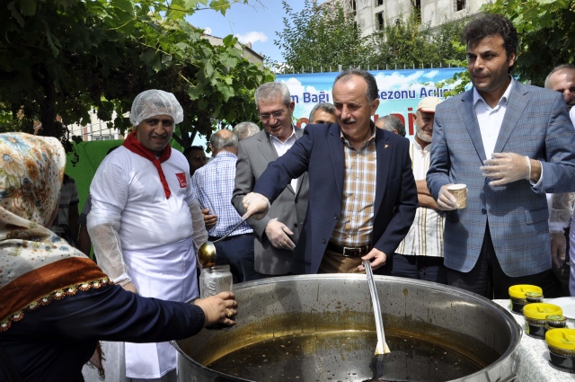 Bağcılar Belediyesi tarafından 9 farklı türde 220 üzüm asmasının yetiştirildiği Sancaktepe Mahallesi'ndeki bağda düzenlenen "bağ bozumu" etkinliğinde, 3 bin kişiye organik pekmez dağıtıldı.