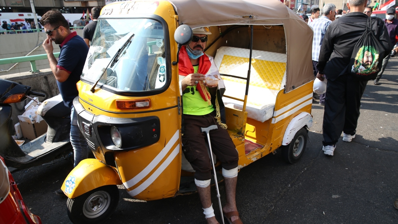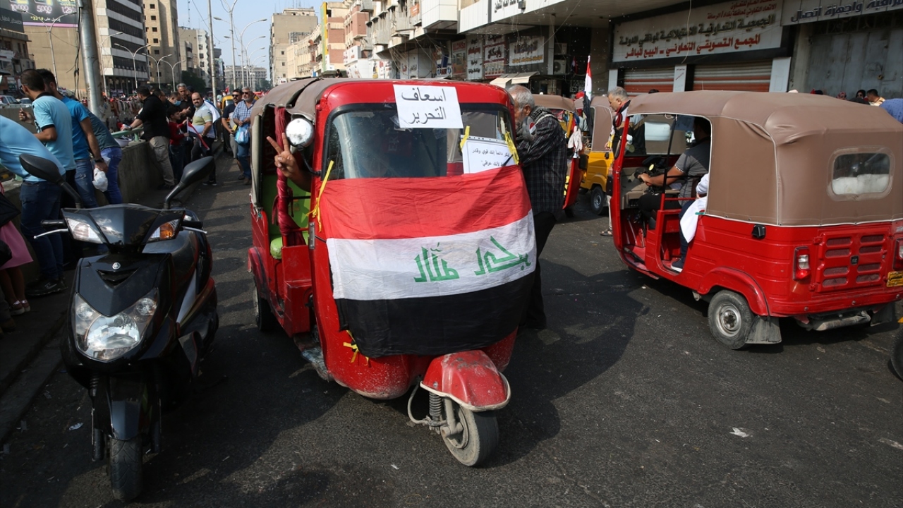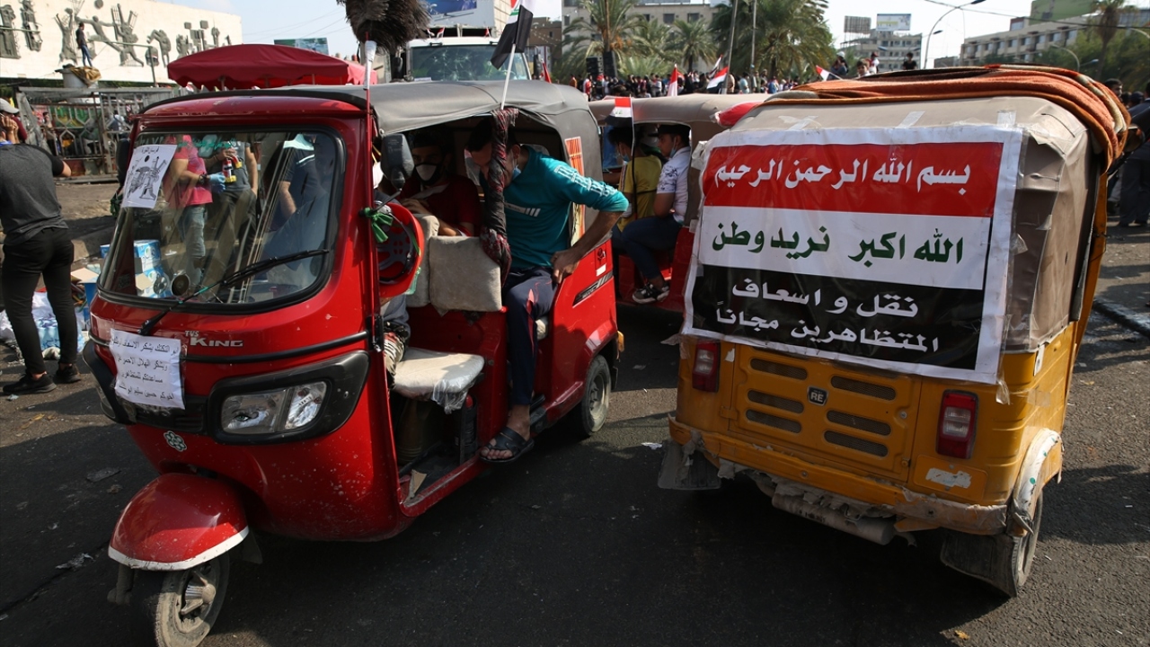 Irak'ın başkenti Bağdat'ta süren hükümet karşıtı gösterilerde ambulans görevini "tuk tuk" olarak da bilinen motor taksiler üstleniyor.