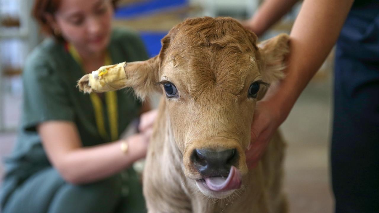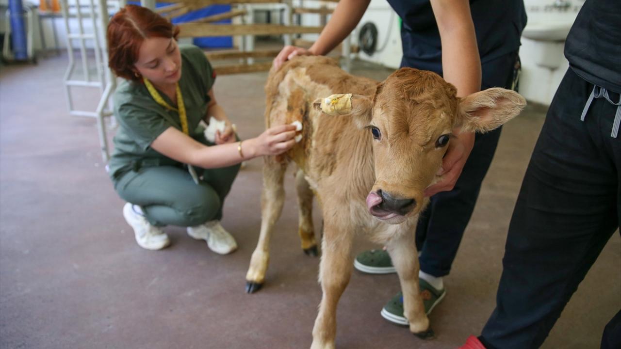 Selçuk Üniversitesi Veteriner Fakültesi Hayvan Hastanesi'ne 4 günlükken getirilen ve gerçekleştirilen ameliyatla yaşatılan buzağının bakımı özenle yapılıyor.