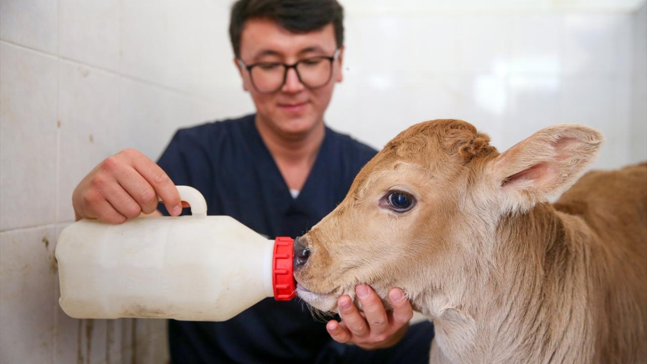 Bağırsağının bir bölümü oluşmadan doğan buzağıyı yaşatabilmek için seferber oldular