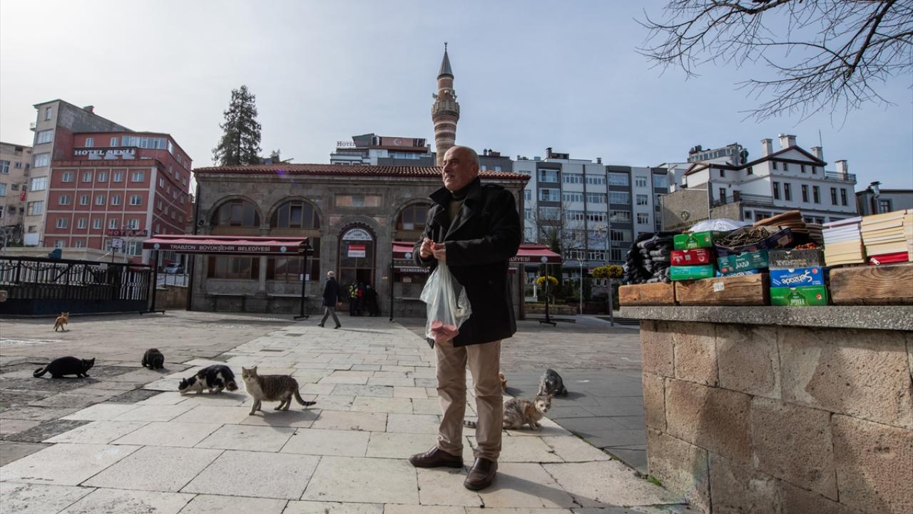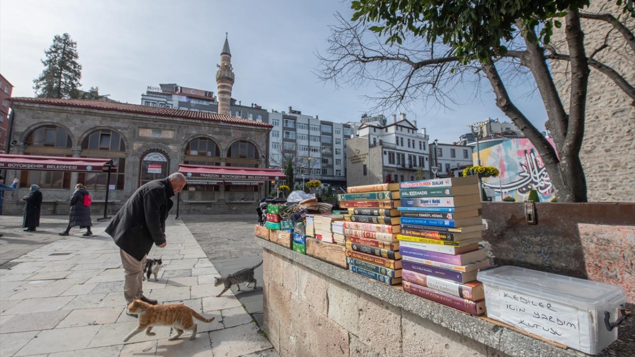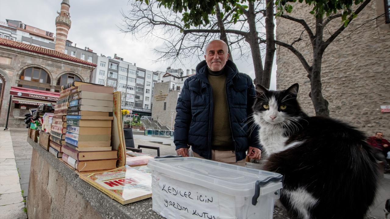 Trabzon'da tarihi İskenderpaşa Camisi'nin avlusunda 40 yıldır kitap satarak geçimini sağlayan İsmail Gürsoy, topladığı bağışlarla sahipsiz kedileri doyuruyor.
